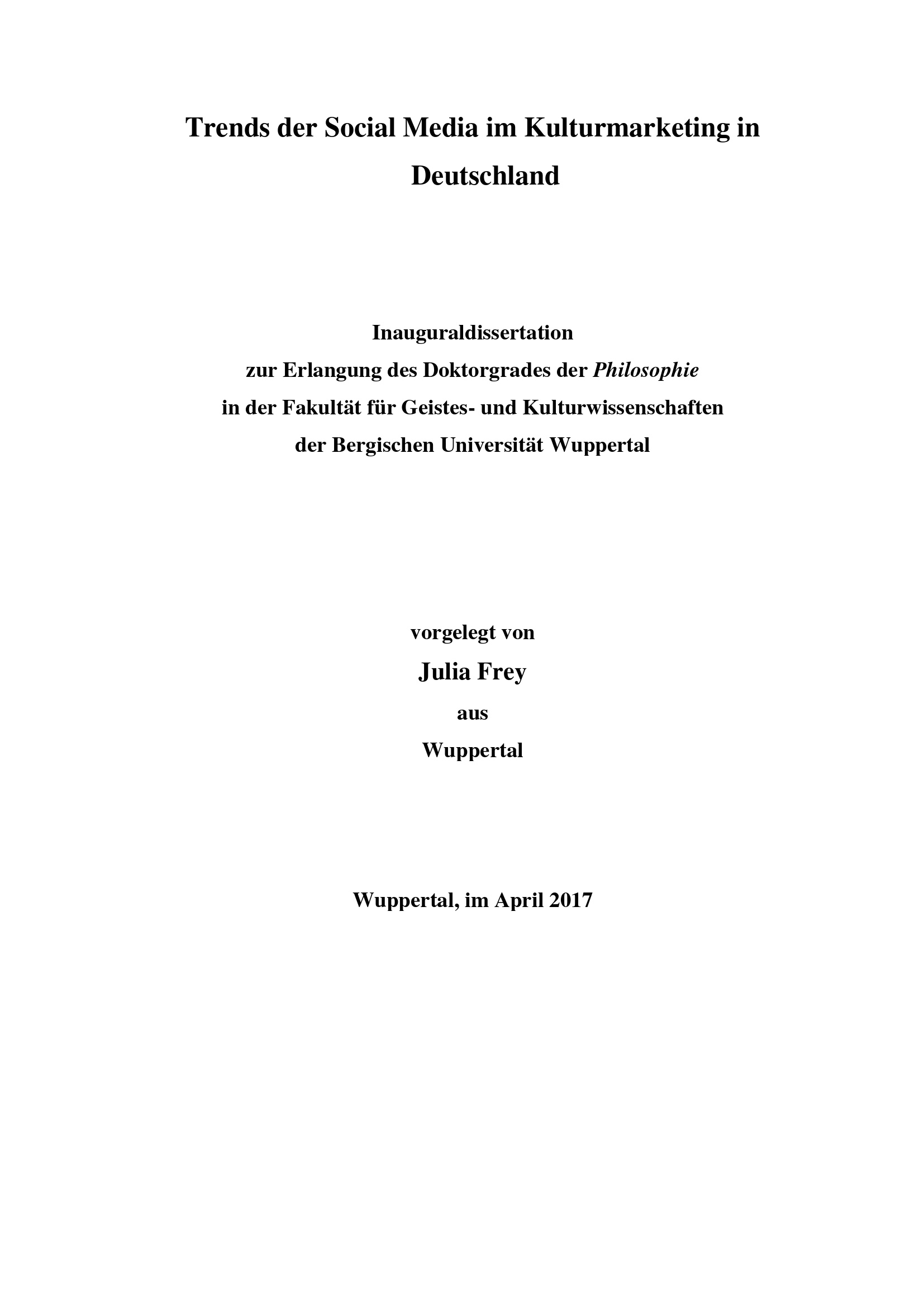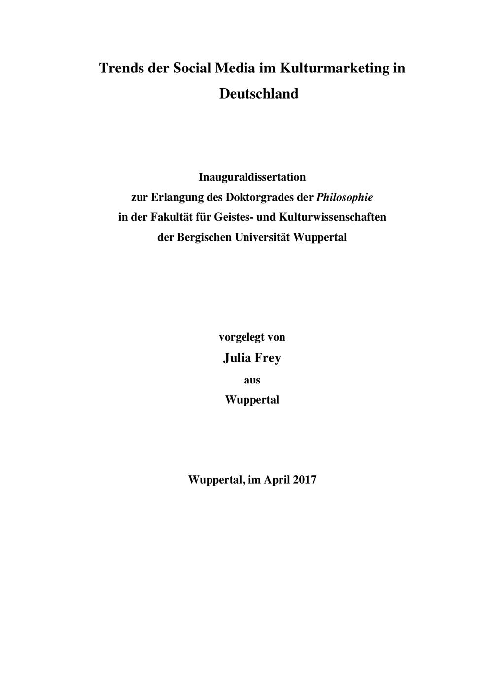 Trends der Social Media im Kulturmarketing in Deutschland / vorgelegt von Julia Frey aus Wuppertal