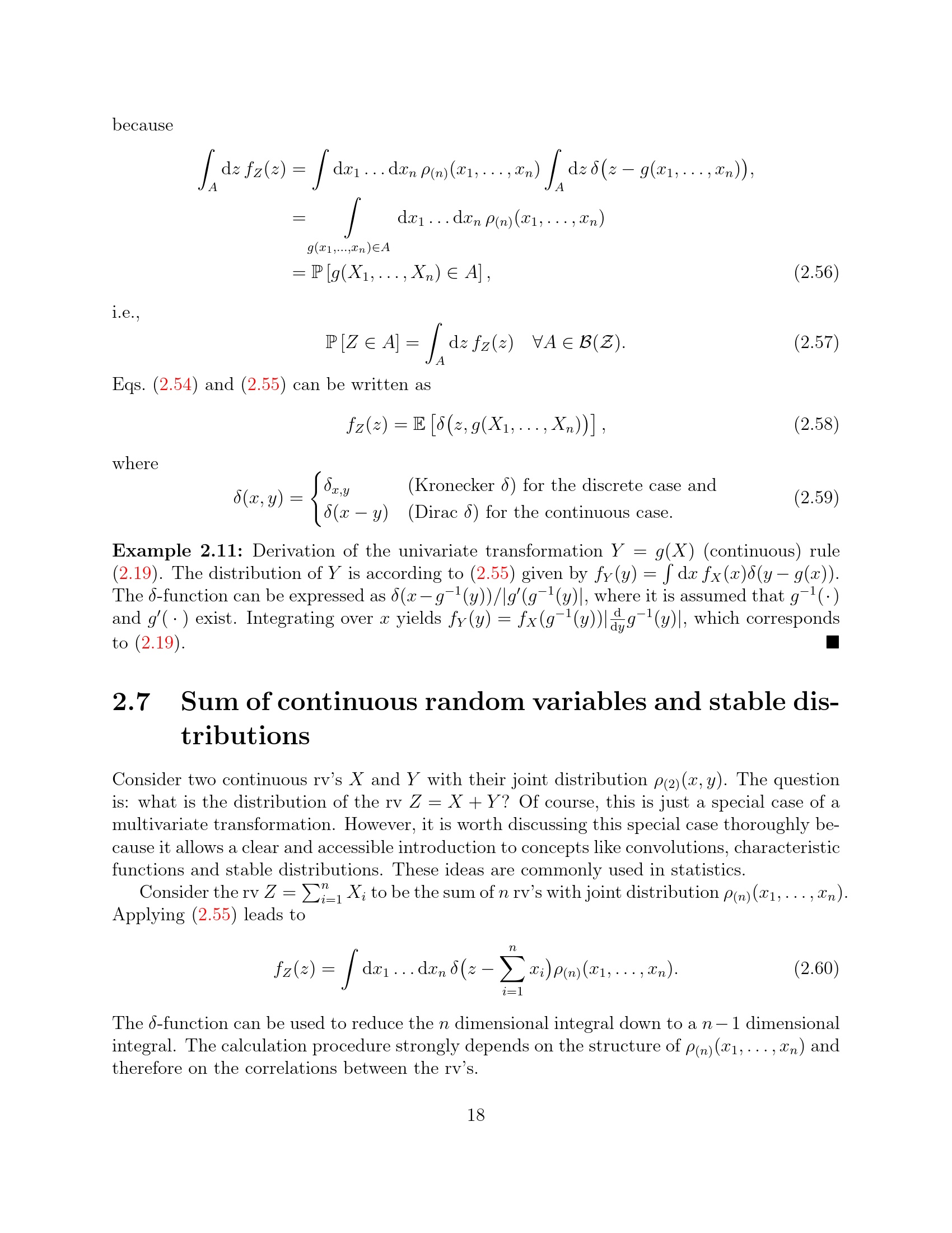 Sum of continuous random variables and stable distributions