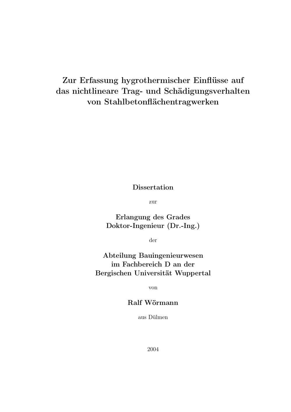 Zur Erfassung hygrothermischer Einflüsse auf das nichtlineare Trag- und Schädigungsverhalten von Stahlbetonflächentragwerken / von Ralf Wörmann