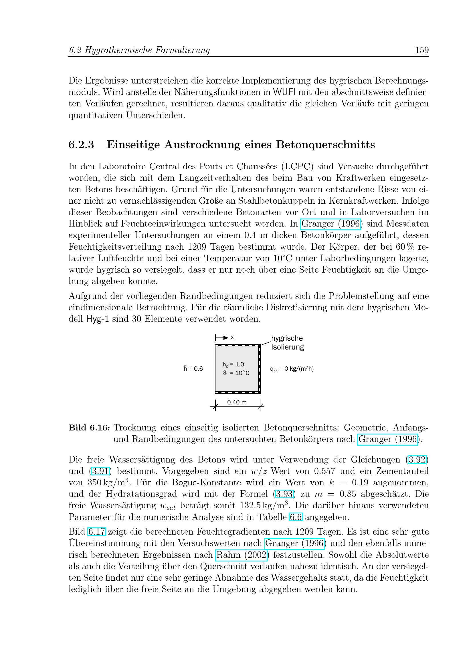 Einseitige Austrocknung eines Betonquerschnitts