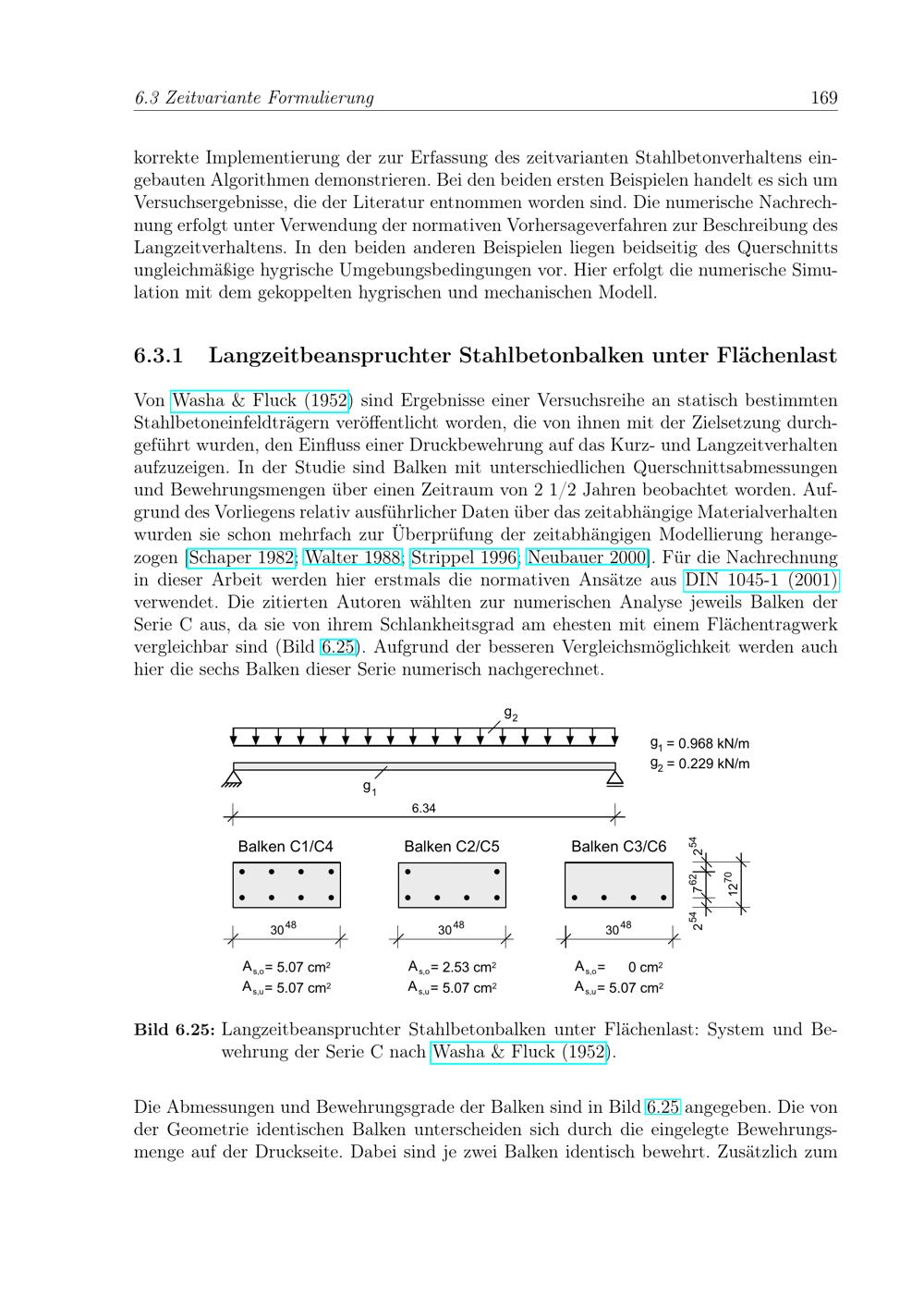 Langzeitbeanspruchter Stahlbetonbalken unter Flächenlast