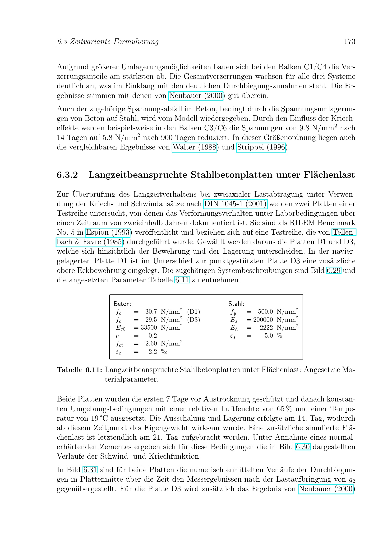 Langzeitbeanspruchte Stahlbetonplatten unter Flächenlast