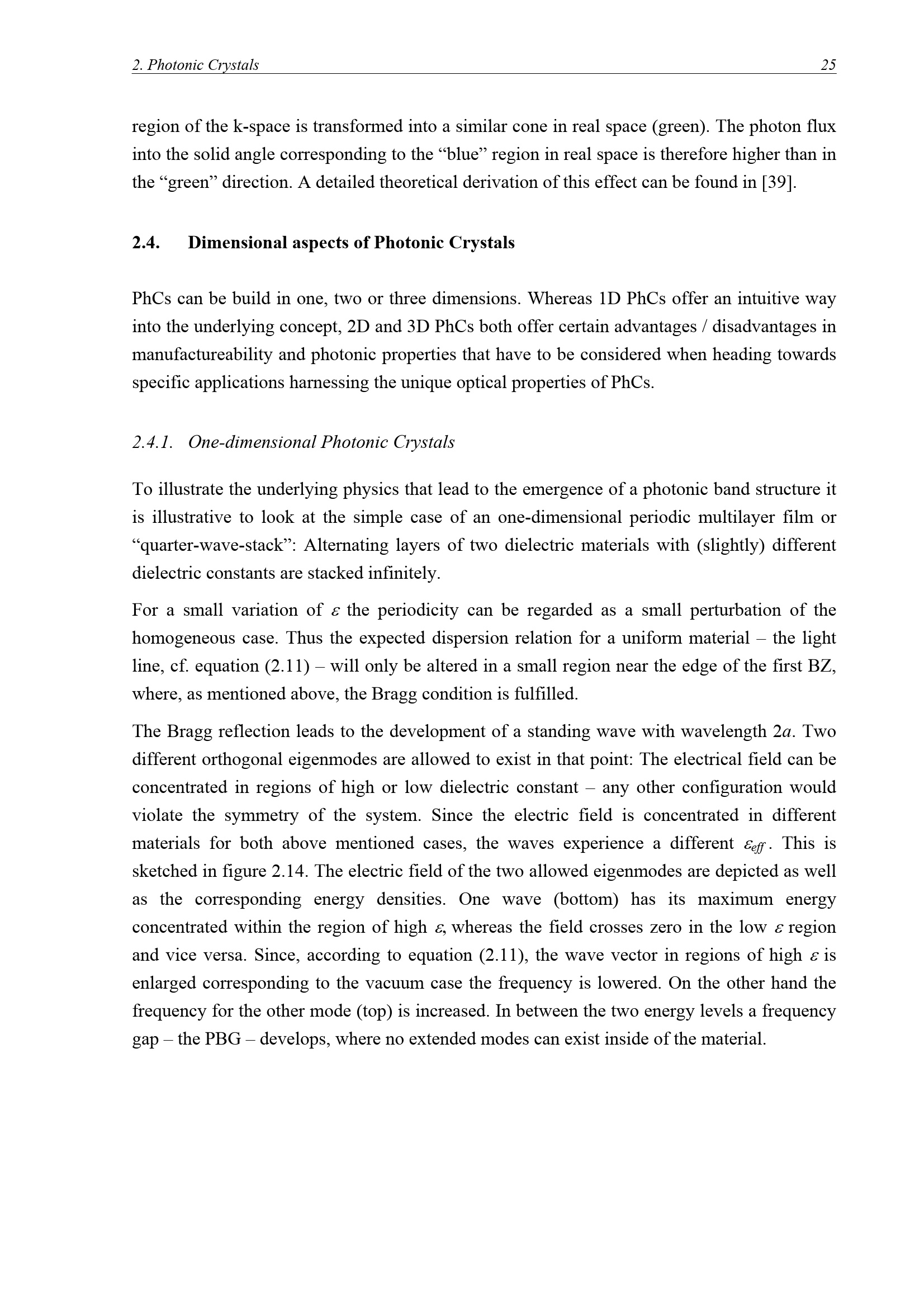 Dimensional aspects of Photonic Crystals
