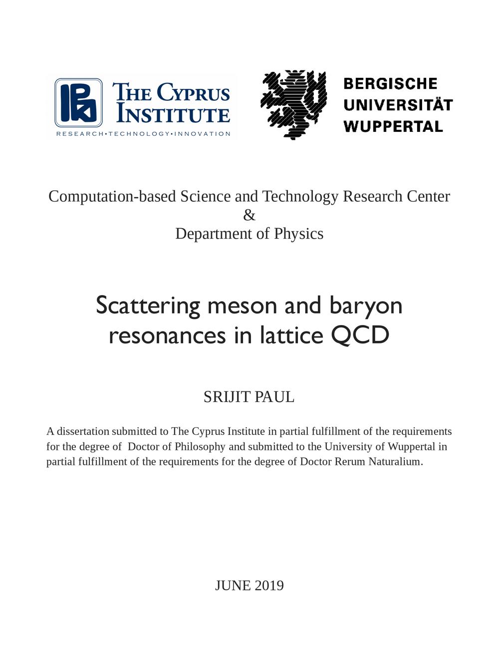 Scattering meson and baryon resonances in lattice QCD / Srijit Paul