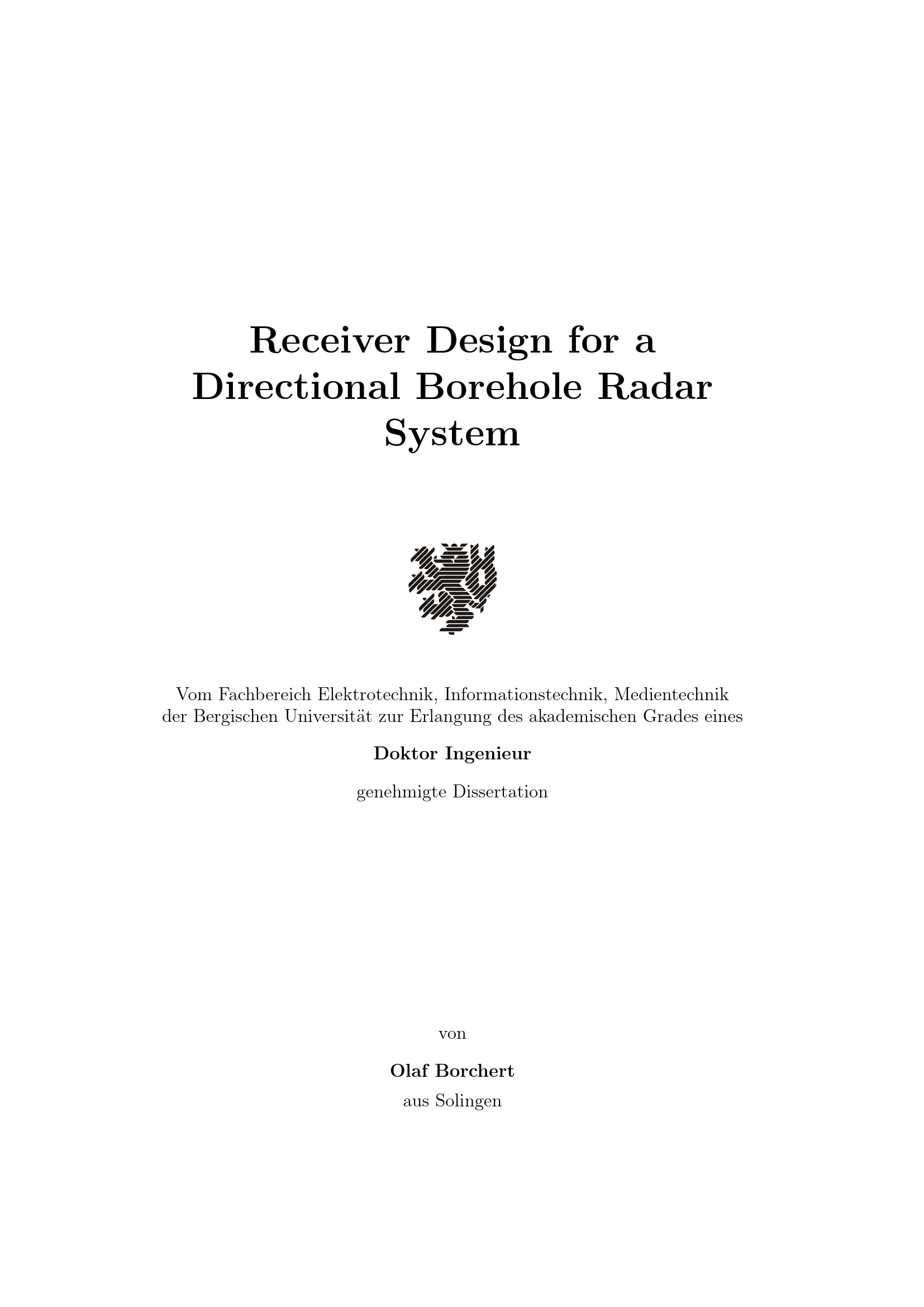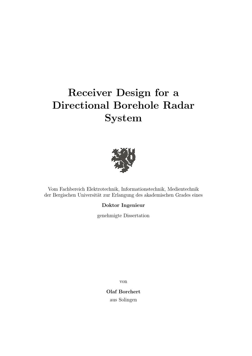Receiver design for a directional borehole radar system / von Olaf Borchert