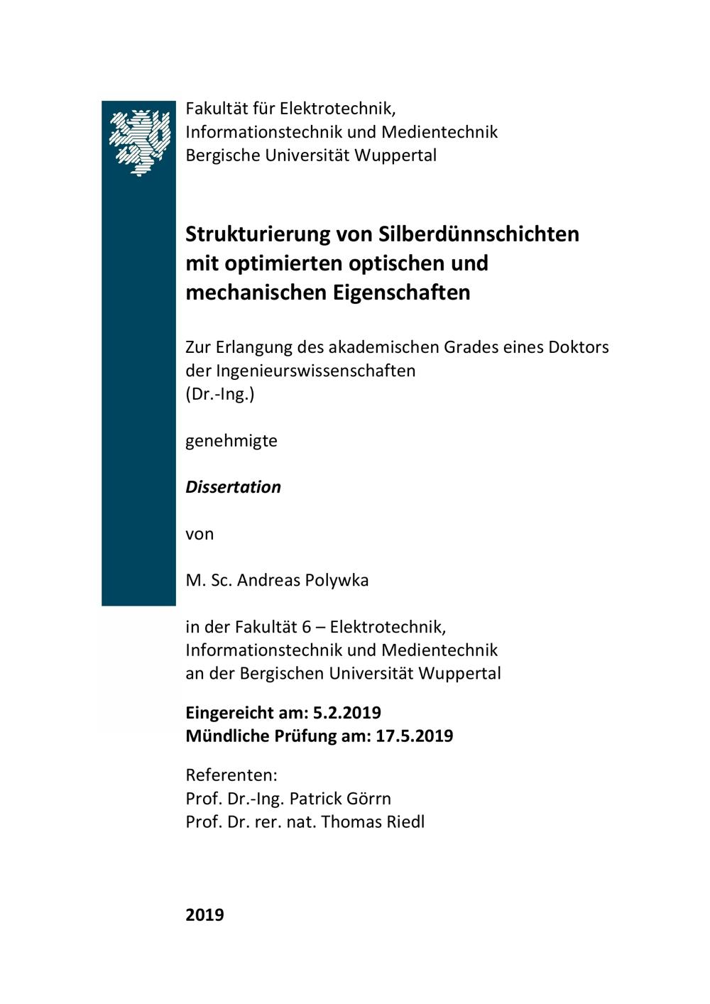 Strukturierung von Silberdünnschichten mit optimierten optischen und mechanischen Eigenschaften / von M. Sc. Andreas Polywka