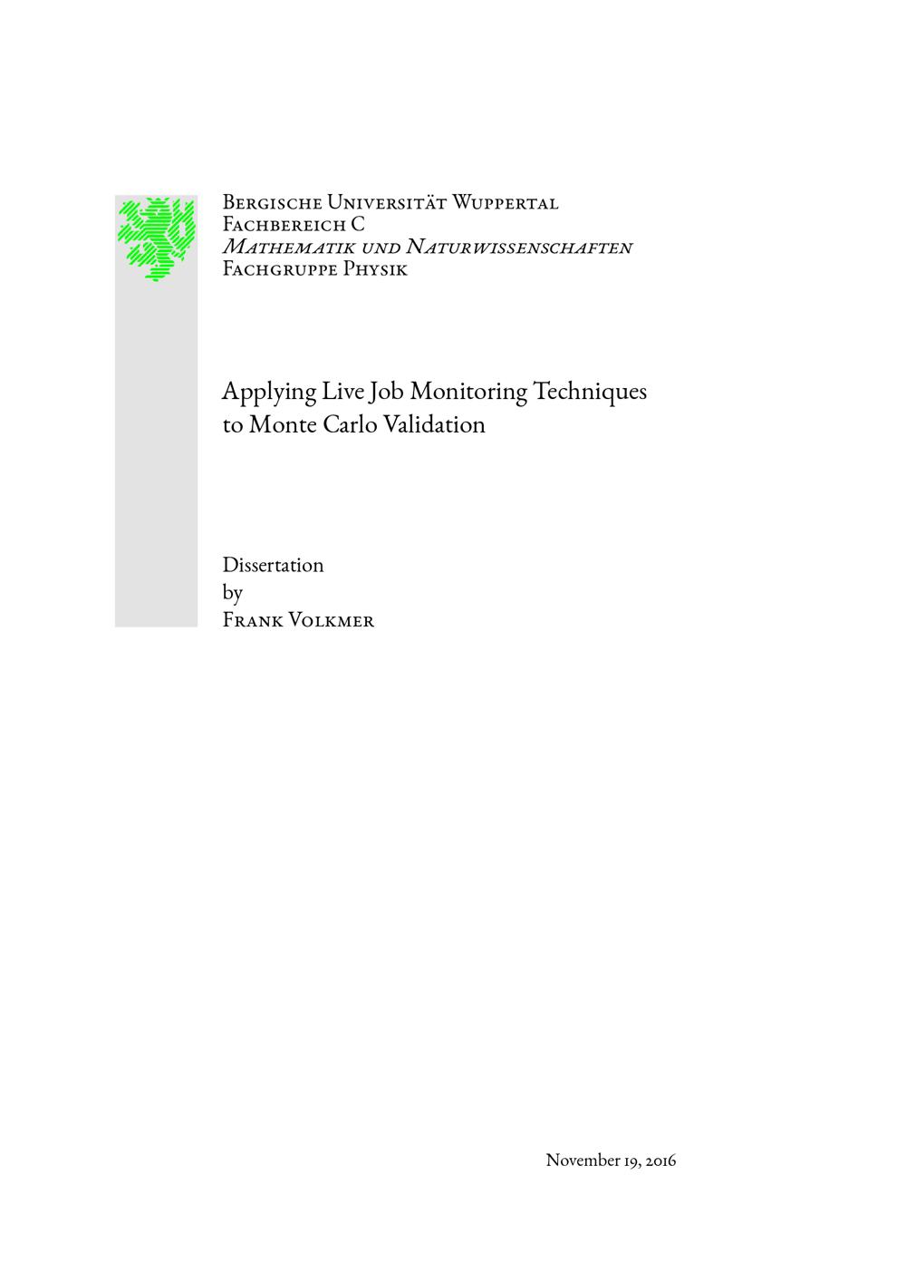 Applying live job monitoring techniques to Monte Carlo validation / by Frank Volkmer