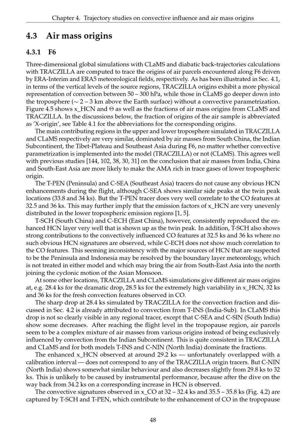 Trajectory studies on convective influence and air mass origins