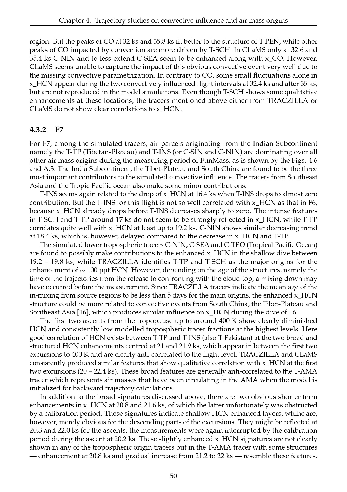 Trajectory studies on convective influence and air mass origins