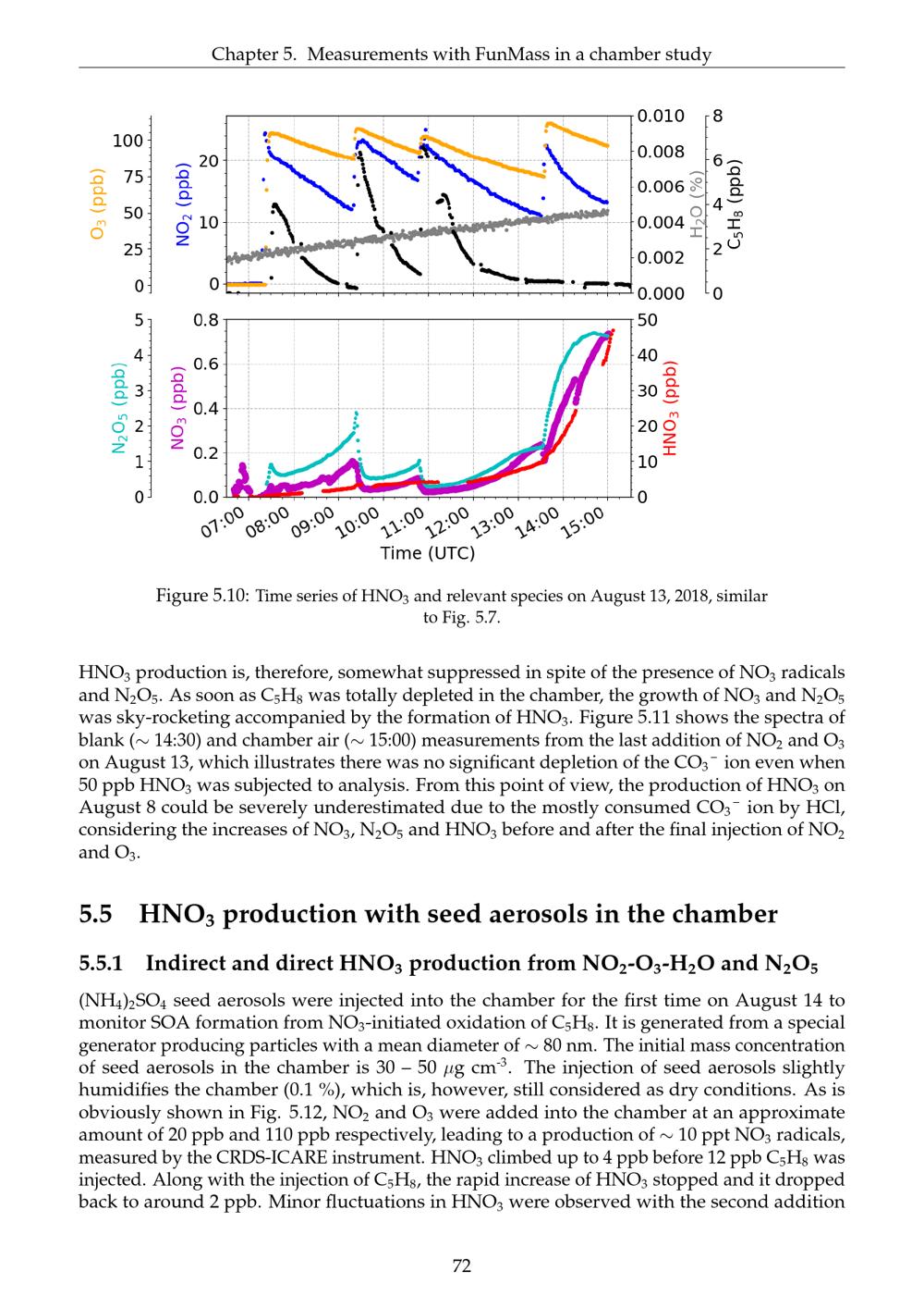HNO3 production with seed aerosols in the chamber
