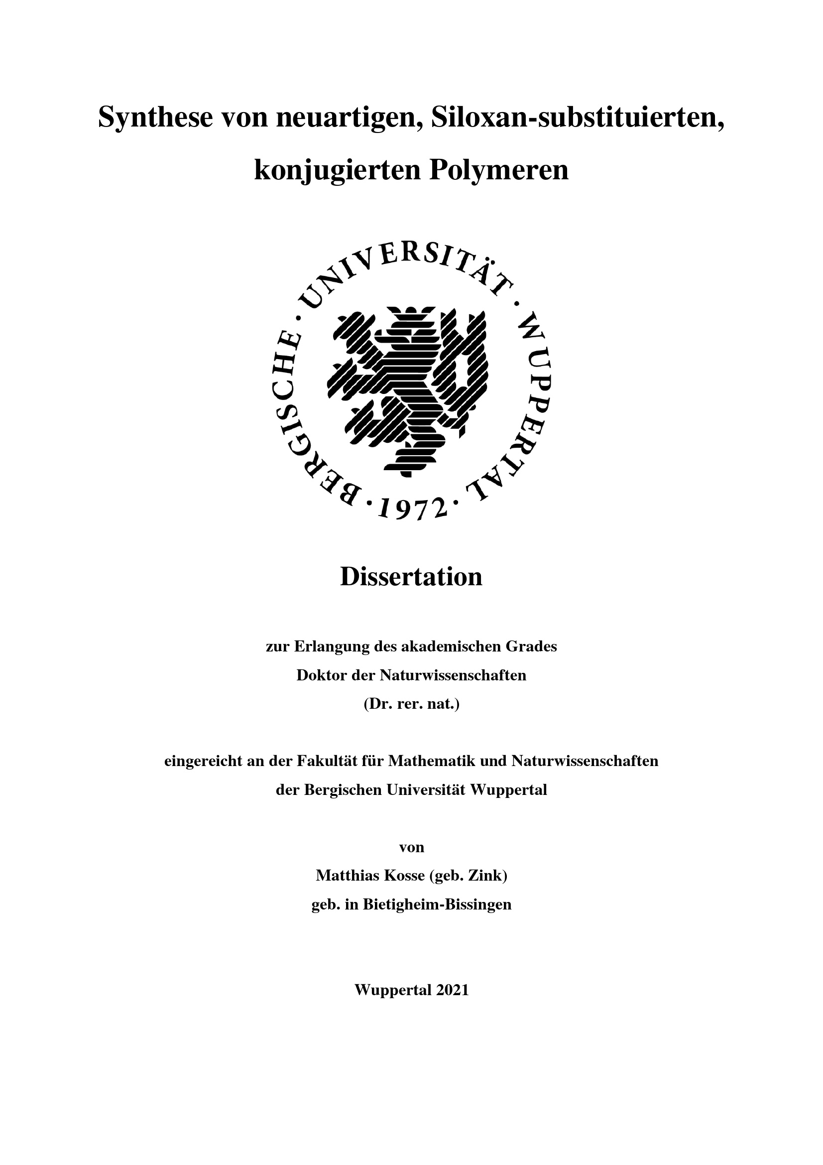 Synthese von neuartigen, Siloxan-substituierten, konjugierten Polymeren / von Matthias Kosse