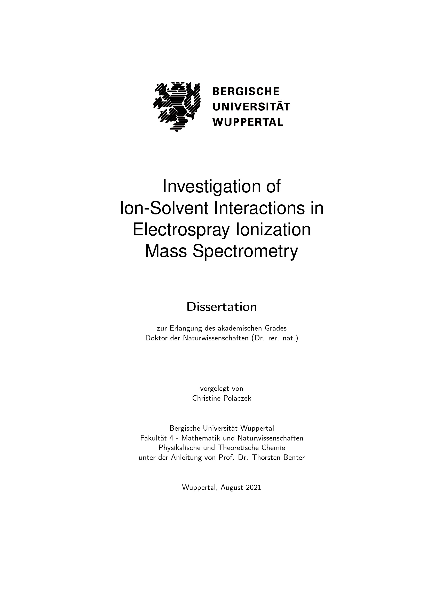 Investigation of ion-solvent interactions in electrospray ionization mass spectrometry / vorgelegt von Christine Polaczek
