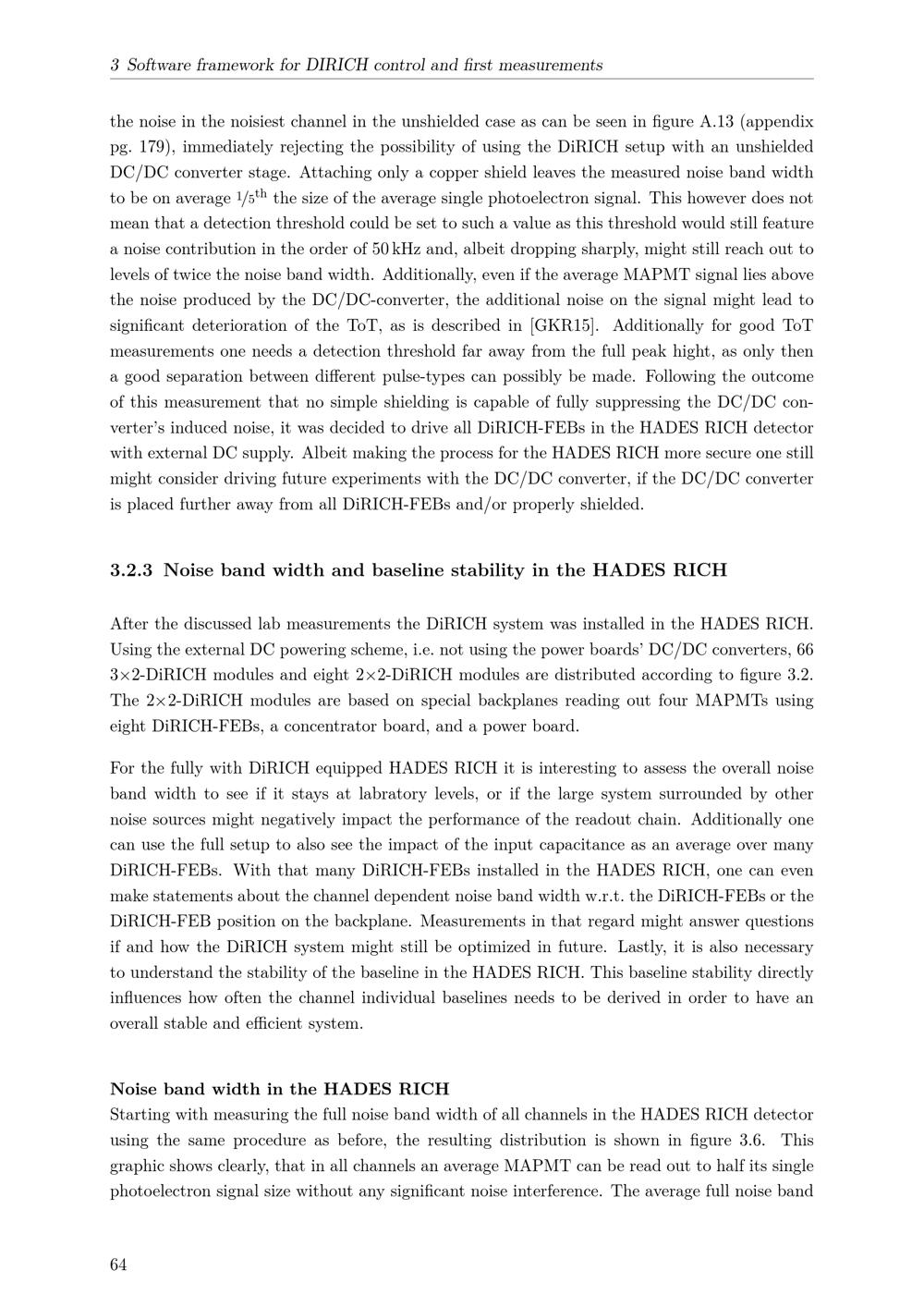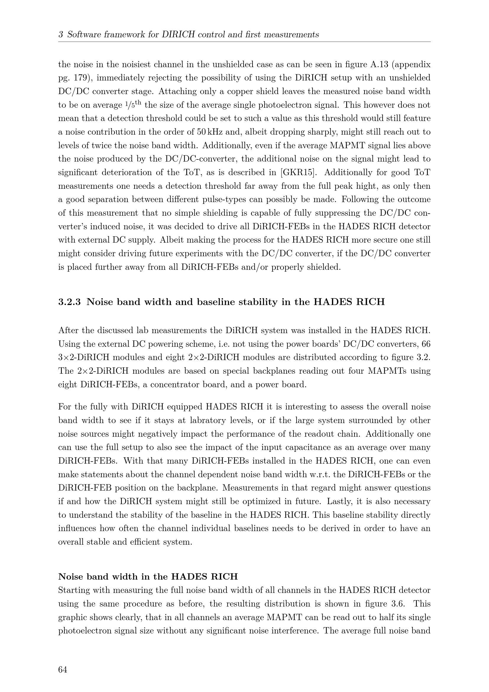 3.2.3 Noise band width and baseline stability in the HADES RICH