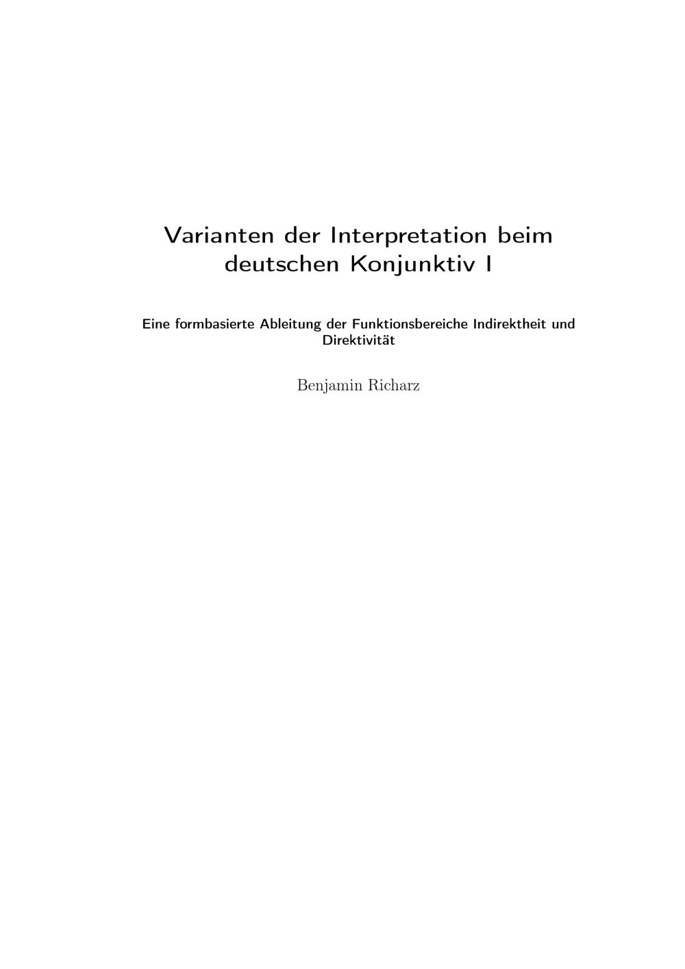 Varianten der Interpretation beim deutschen Konjunktiv I : eine formbasierte Ableitung der Funktionsbereiche Indirektheit und Direktivität / Benjamin Richarz