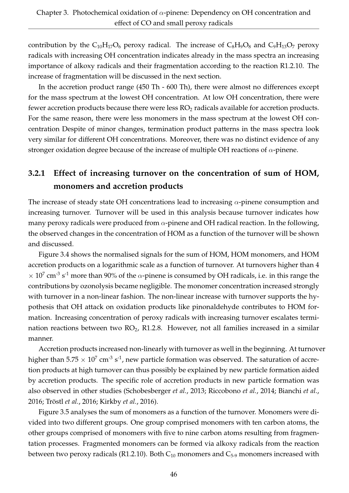 Effect of increasing turnover on the concentration of sum of HOM, monomers and accretion[...]