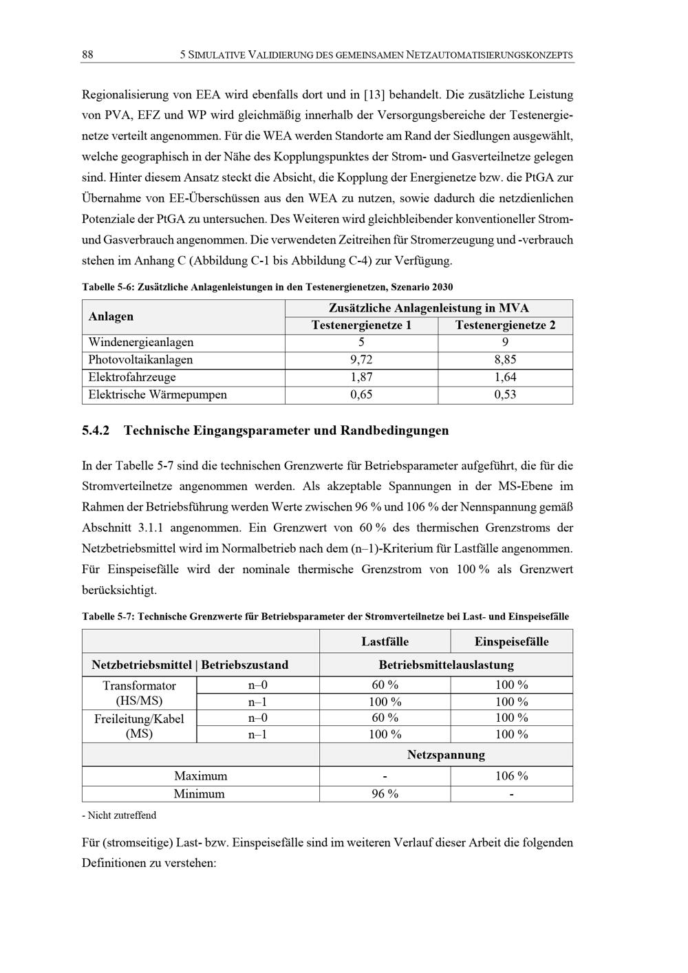 5.4.2 Technische Eingangsparameter und Randbedingungen
