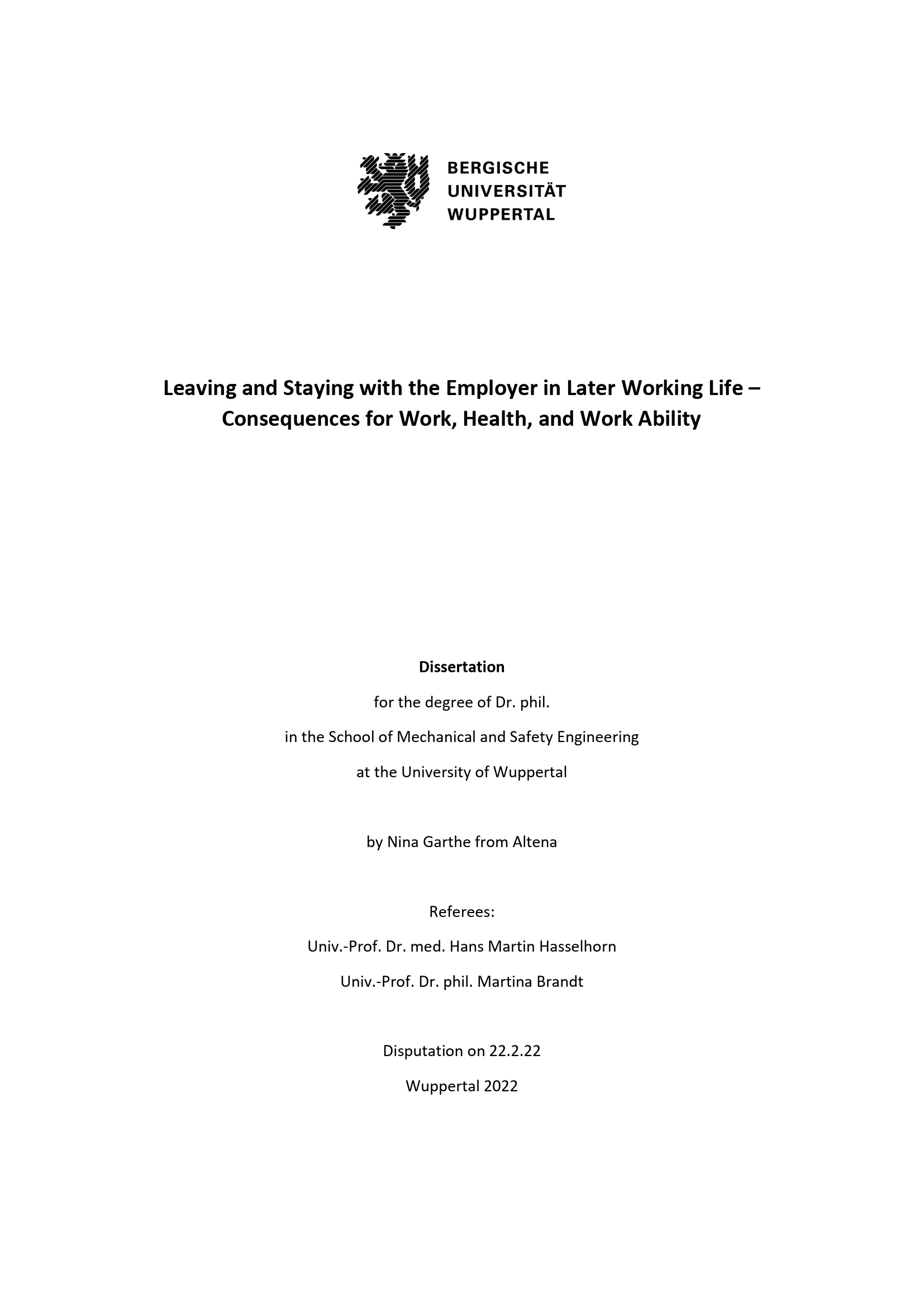 Leaving and staying with the employer in later working life : consequences for work, health, and work ability / by Nina Garthe