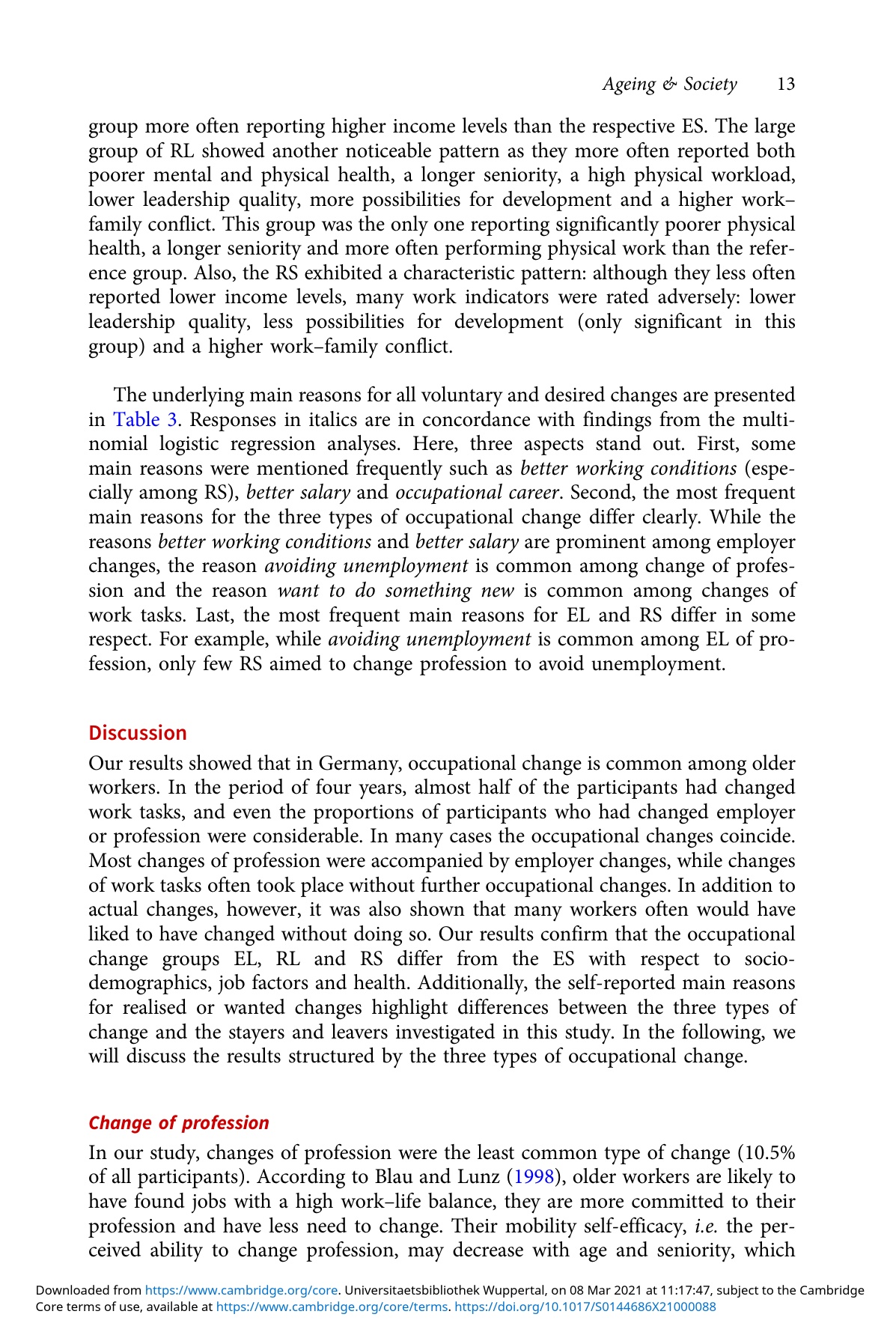 Leaving and staying with the employer in later working life : consequences for work, health, and work ability / by Nina Garthe