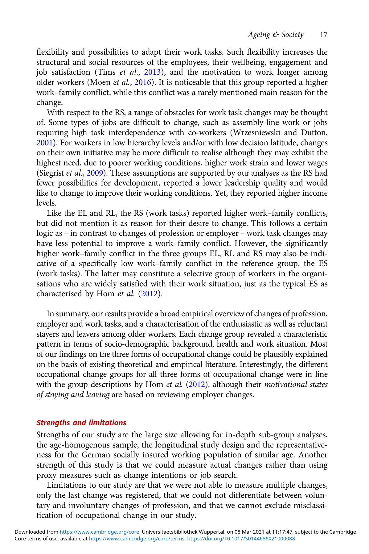 Leaving and staying with the employer in later working life