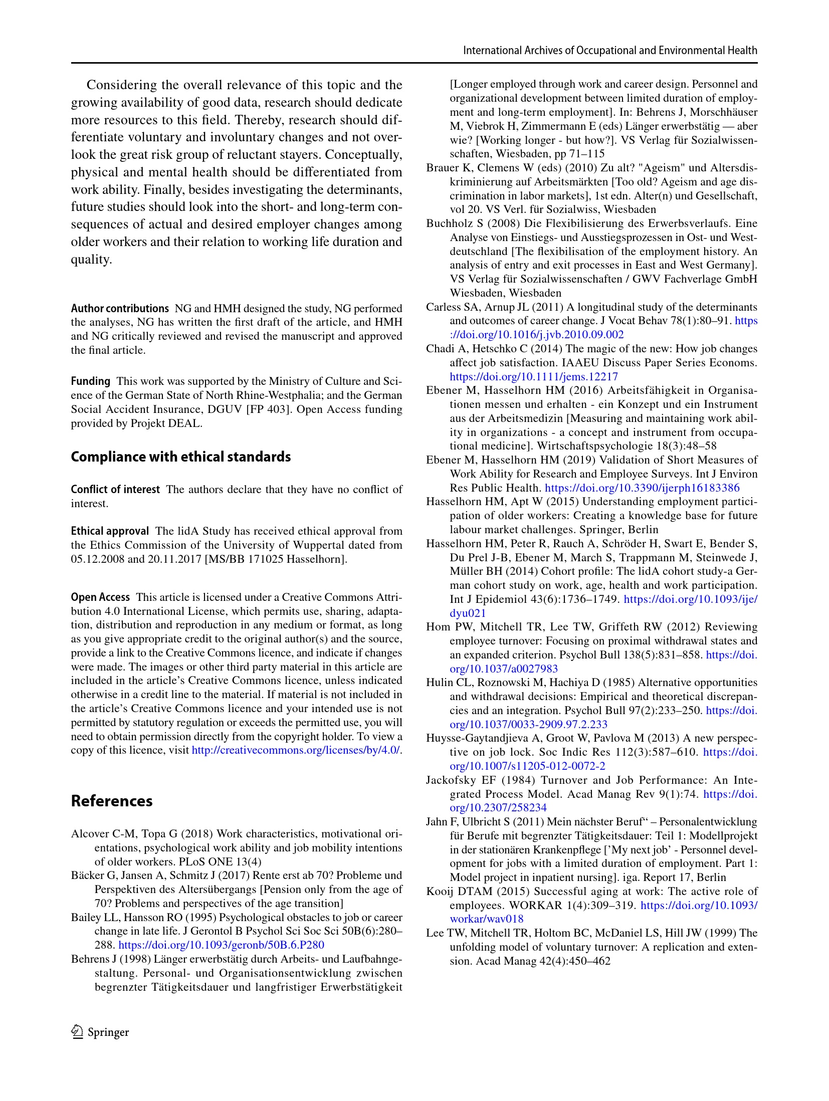 Leaving and staying with the employer—Changes in work, health, and work ability among older[...]