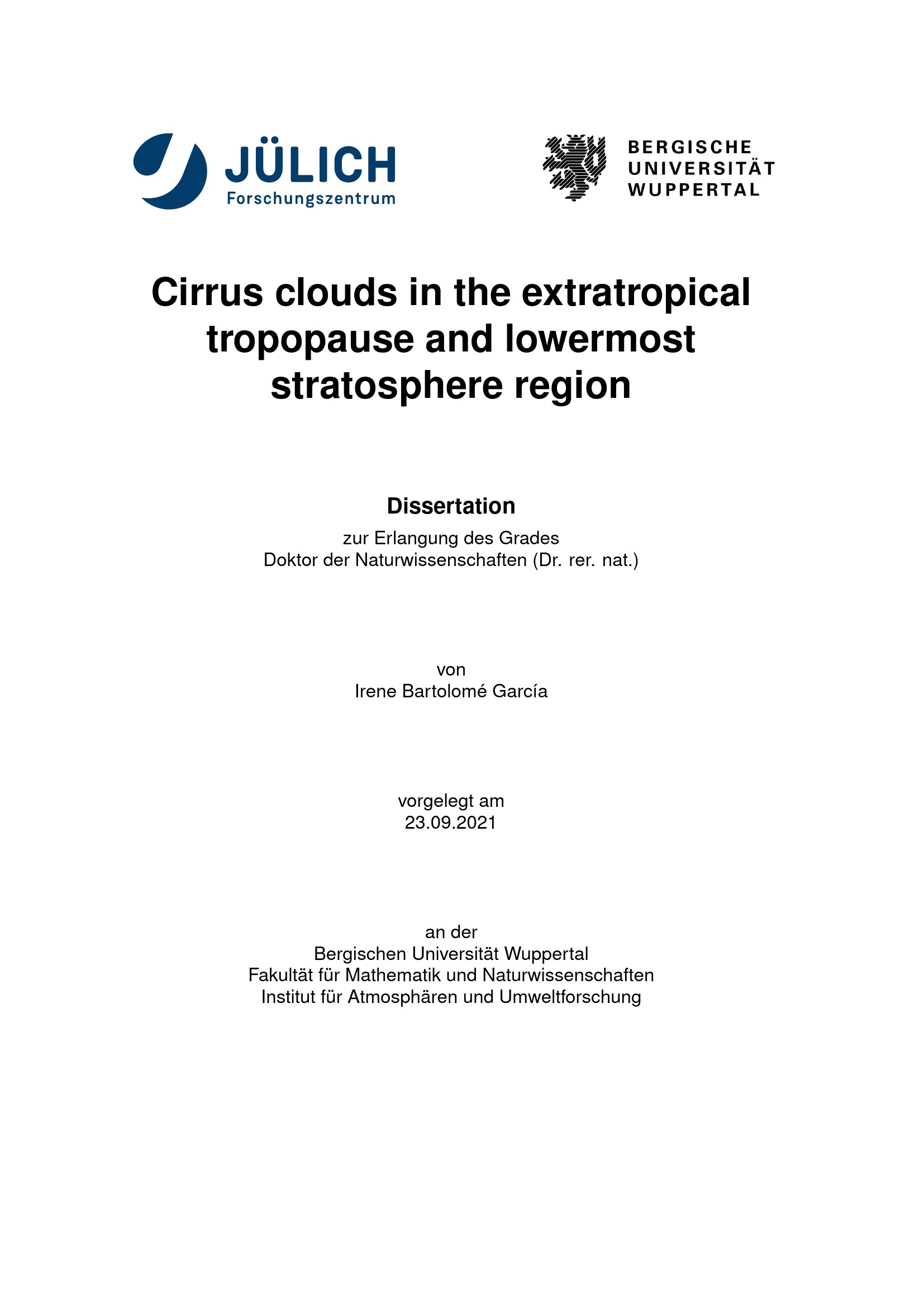 Cirrus clouds in the extratropical tropopause and lowermost stratosphere region / Irene Bartolomé García