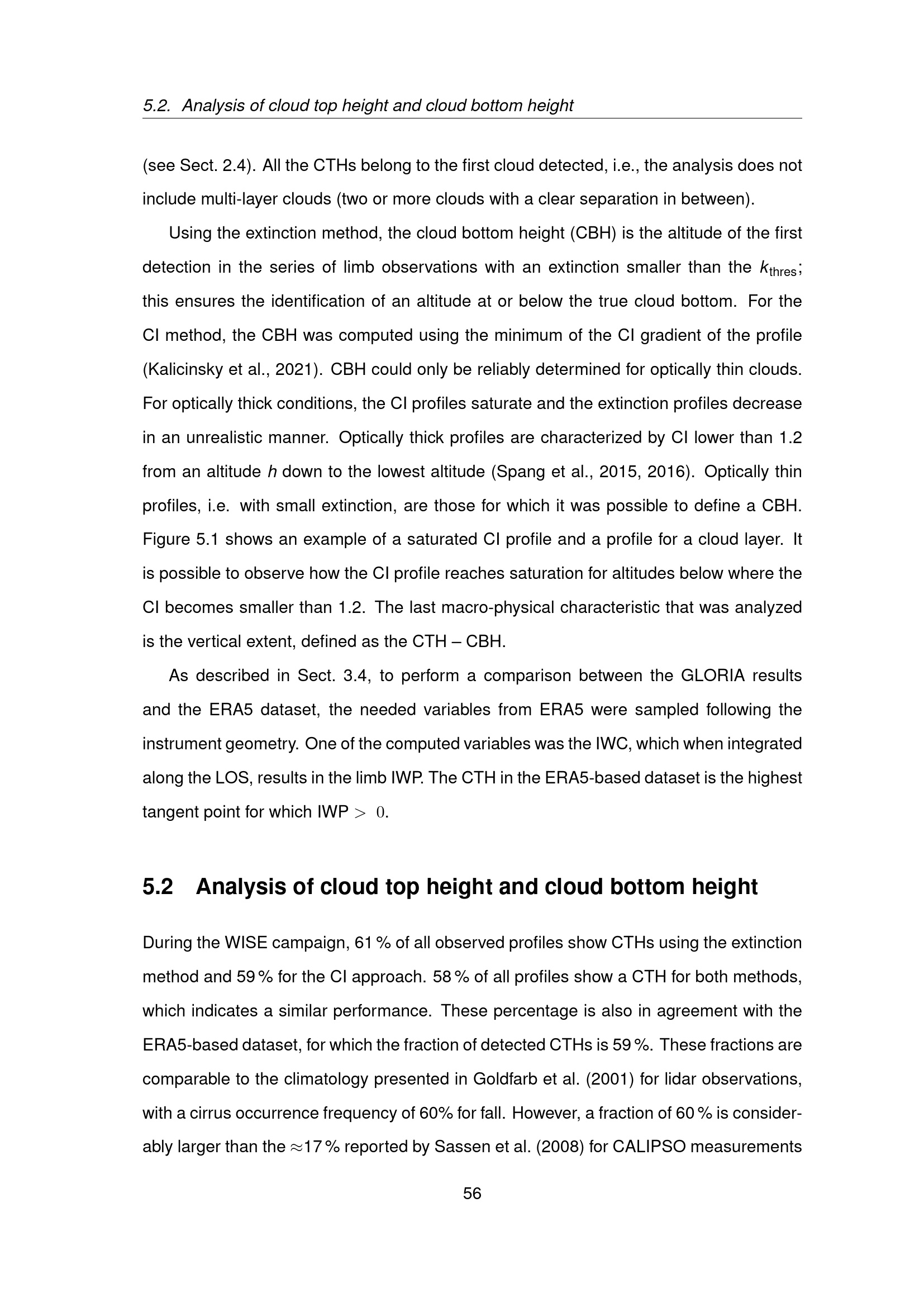 Analysis of cloud top height and cloud bottom height