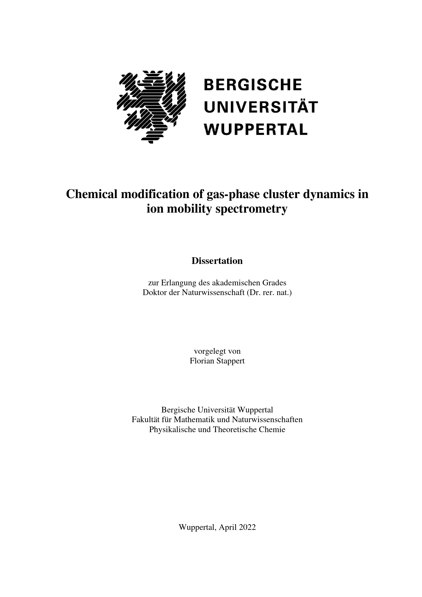 Chemical modification of gas-phase cluster dynamics in ion mobility spectrometry / vorgelegt von Florian Stappert