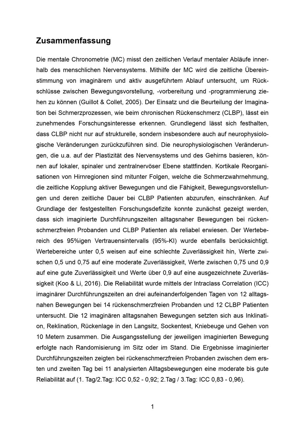 Mentale Chronometrie und die Effekte eines vierwöchigen mentalen Trainings bei chronischen Rückenschmerzpatienten / Christoph Michael Kaminski