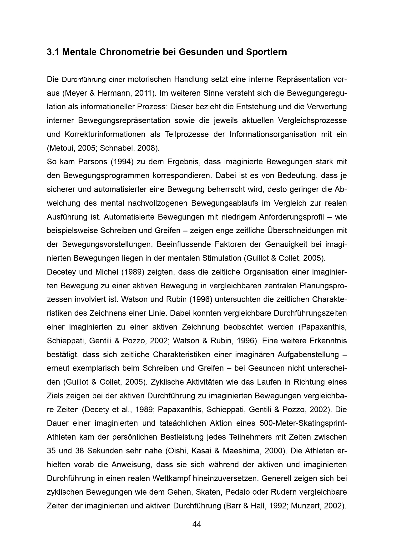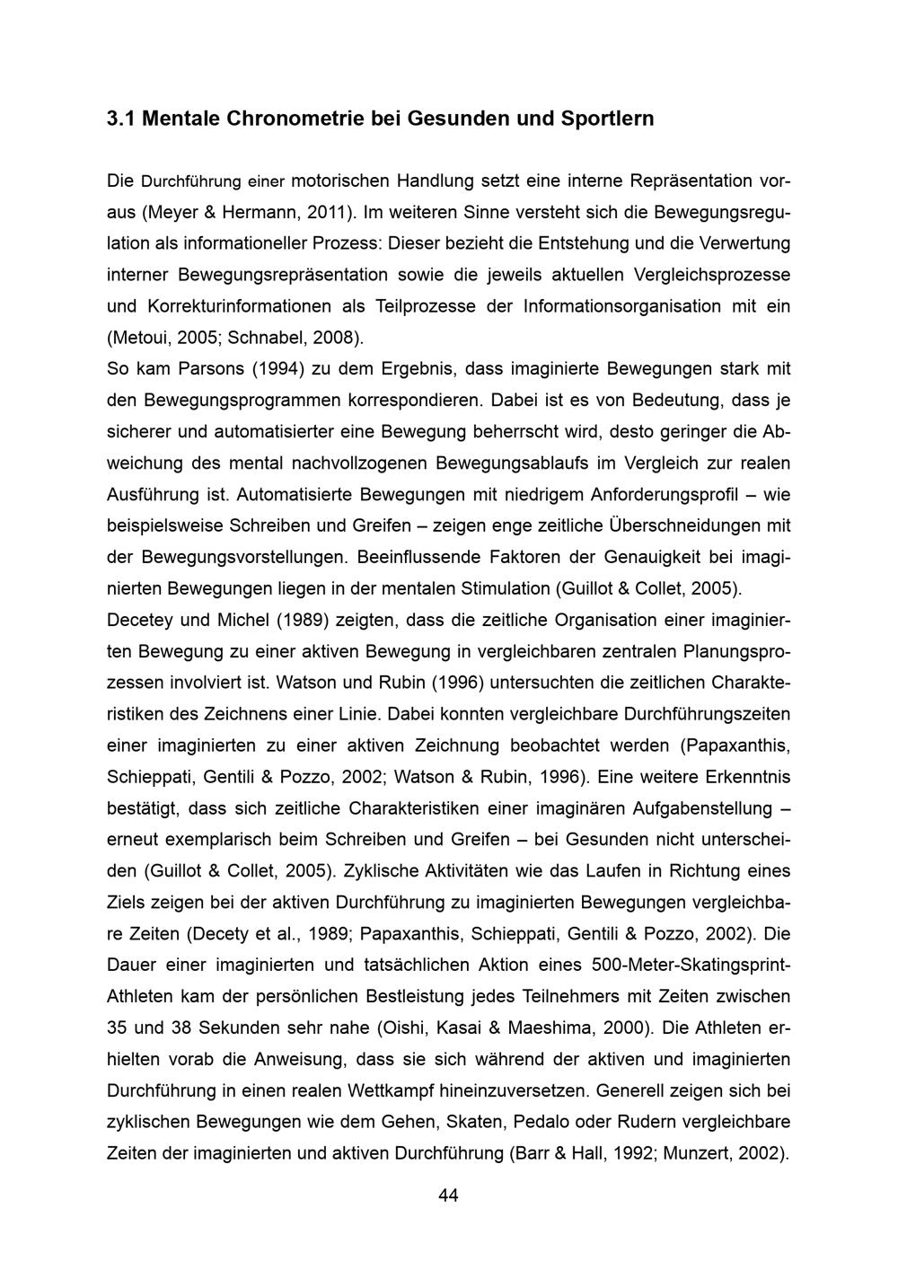 3.1 Mentale Chronometrie bei Gesunden und Sportlern