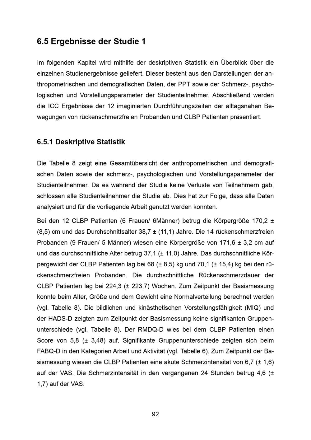 6.5 Ergebnisse der Studie 1