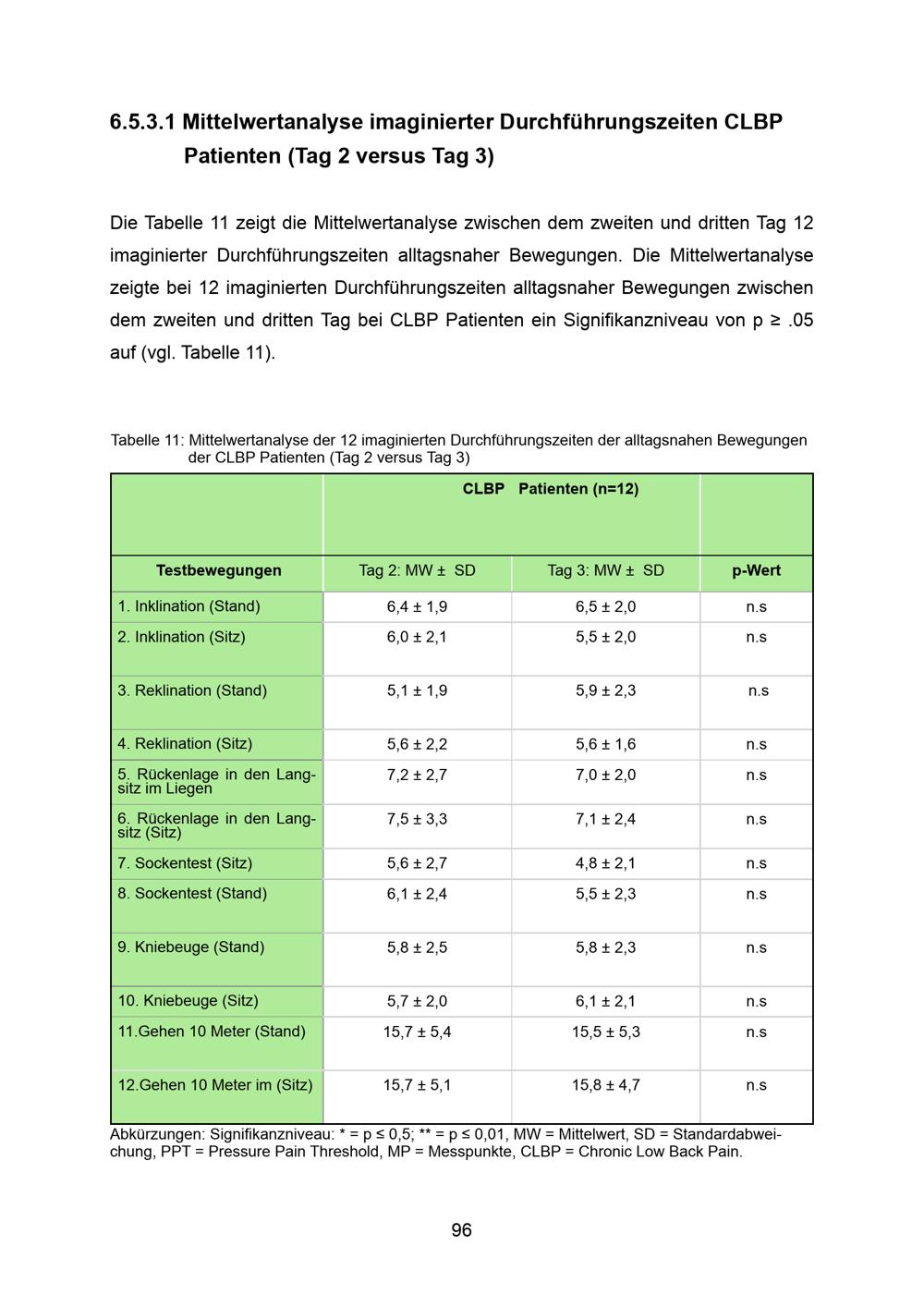 6.5.3.1 Mittelwertanalyse imaginierter Durchführungszeiten CLBP