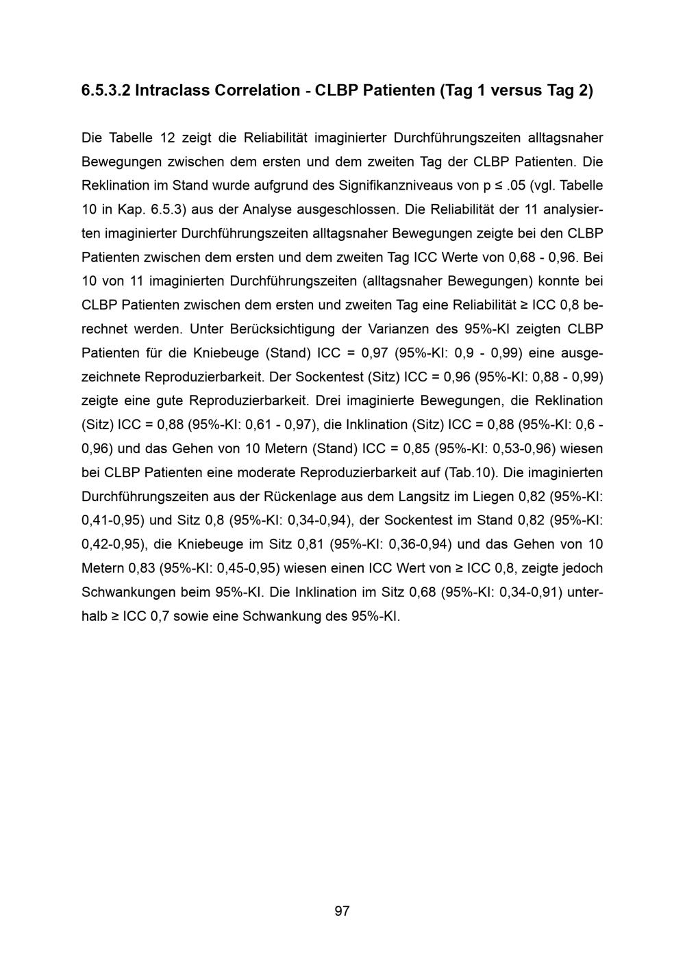 6.5.3.2 Intraclass Correlation - CLBP Patienten (Tag 1 versus Tag 2)