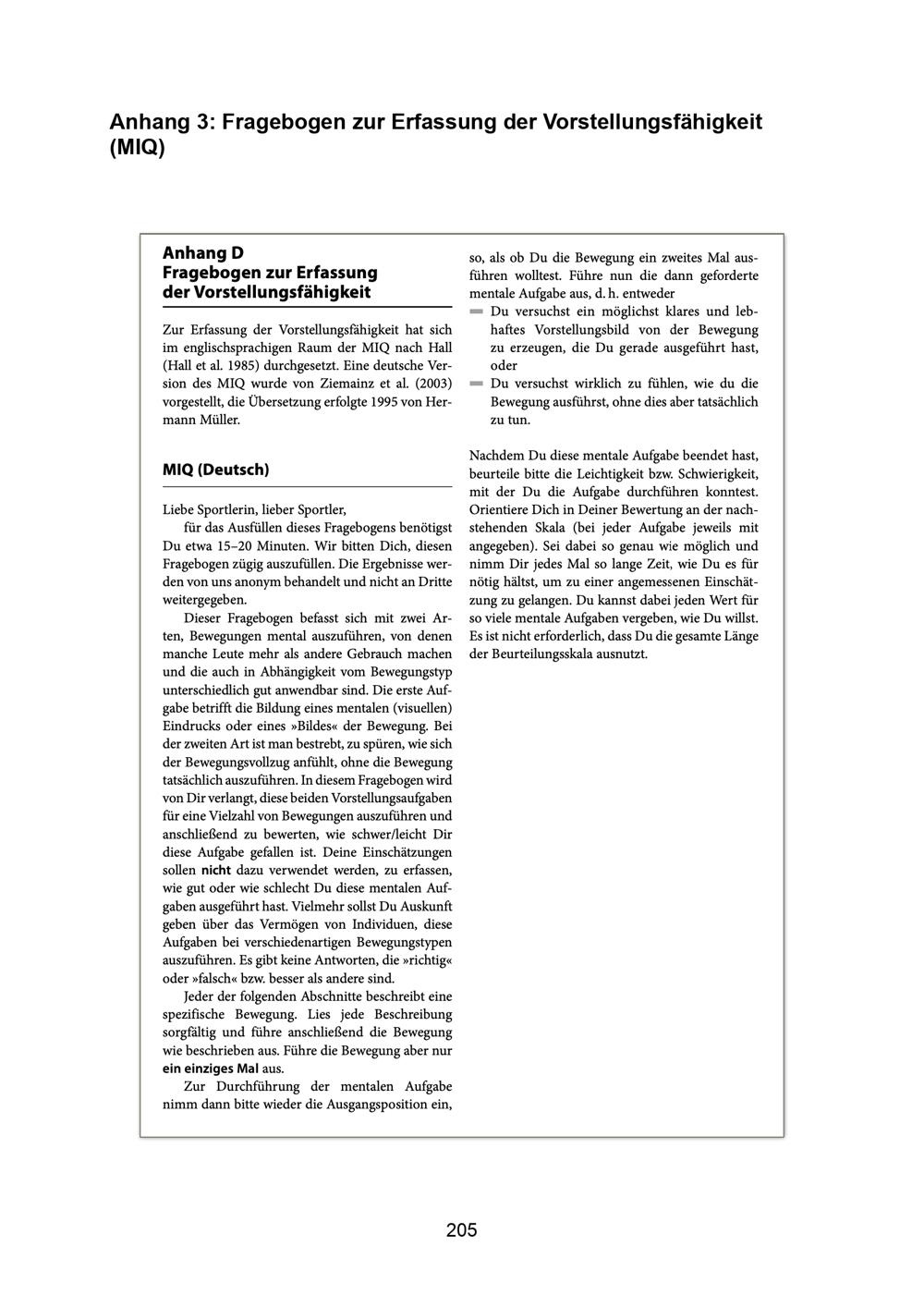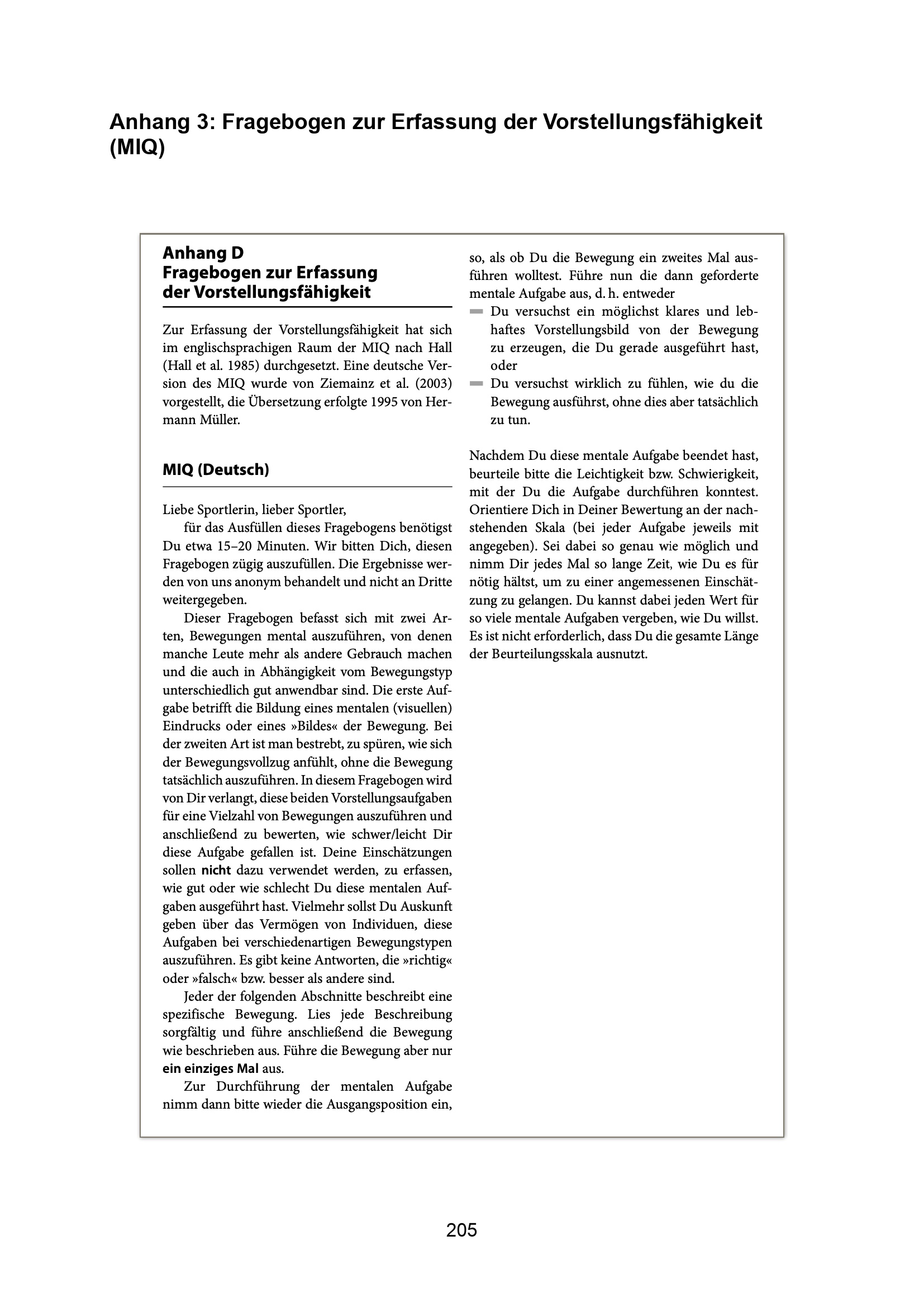 Anhang 3: Fragebogen zur Erfassung der Vorstellungsfähigkeit (MIQ)