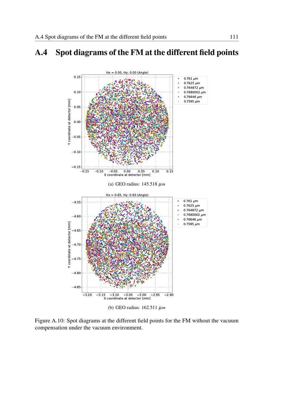 Spot diagrams of the FM at the different field points
