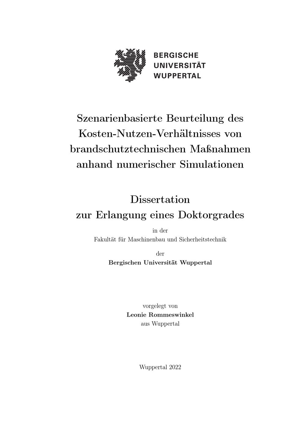 Szenarienbasierte Beurteilung des Kosten-Nutzen-Verhältnisses von brandschutztechnischen Maßnahmen anhand numerischer Simulationen / vorgelegt von Leonie Rommeswinkel