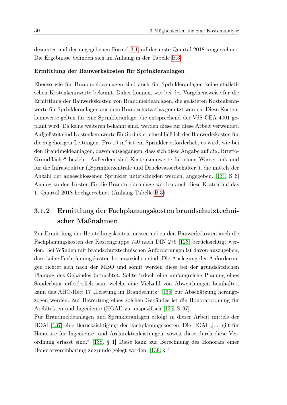 Ermittlung der Herstellungskosten brandschutztechnischer Maßnahmen