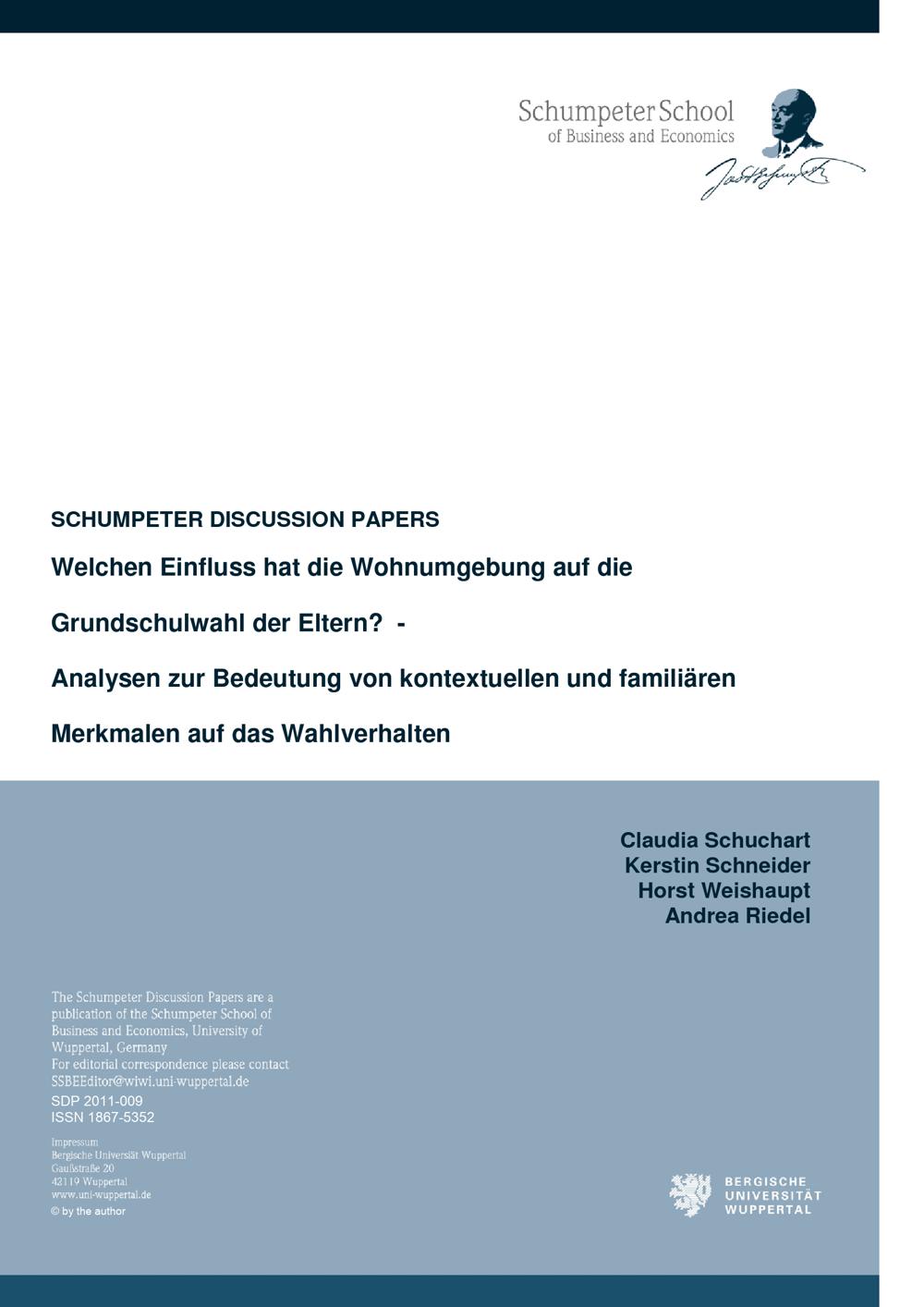 Welchen Einfluss hat die Wohnumgebung auf die Grundschulwahl von Eltern? : Analysen zur Bedeutung von kontextuellen und familiären Merkmalen auf das Wahlverhalten / Claudia Schuchart ...