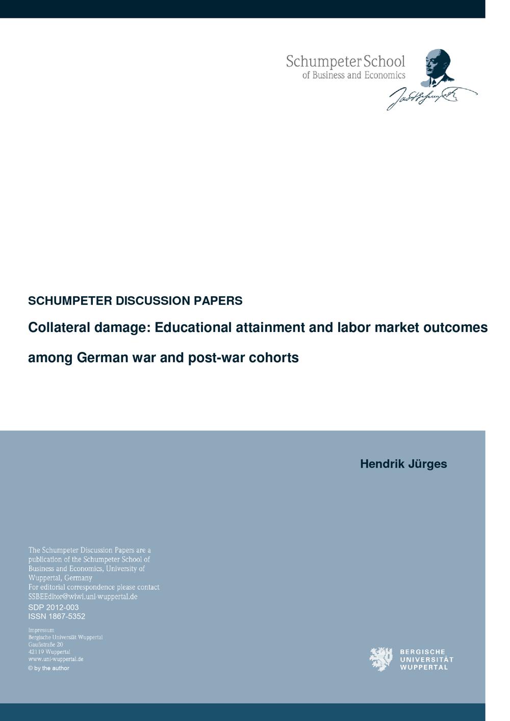 Collateral damage : educational attainment and labor market outcomes among German war and post-war cohorts / Hendrik Jürges