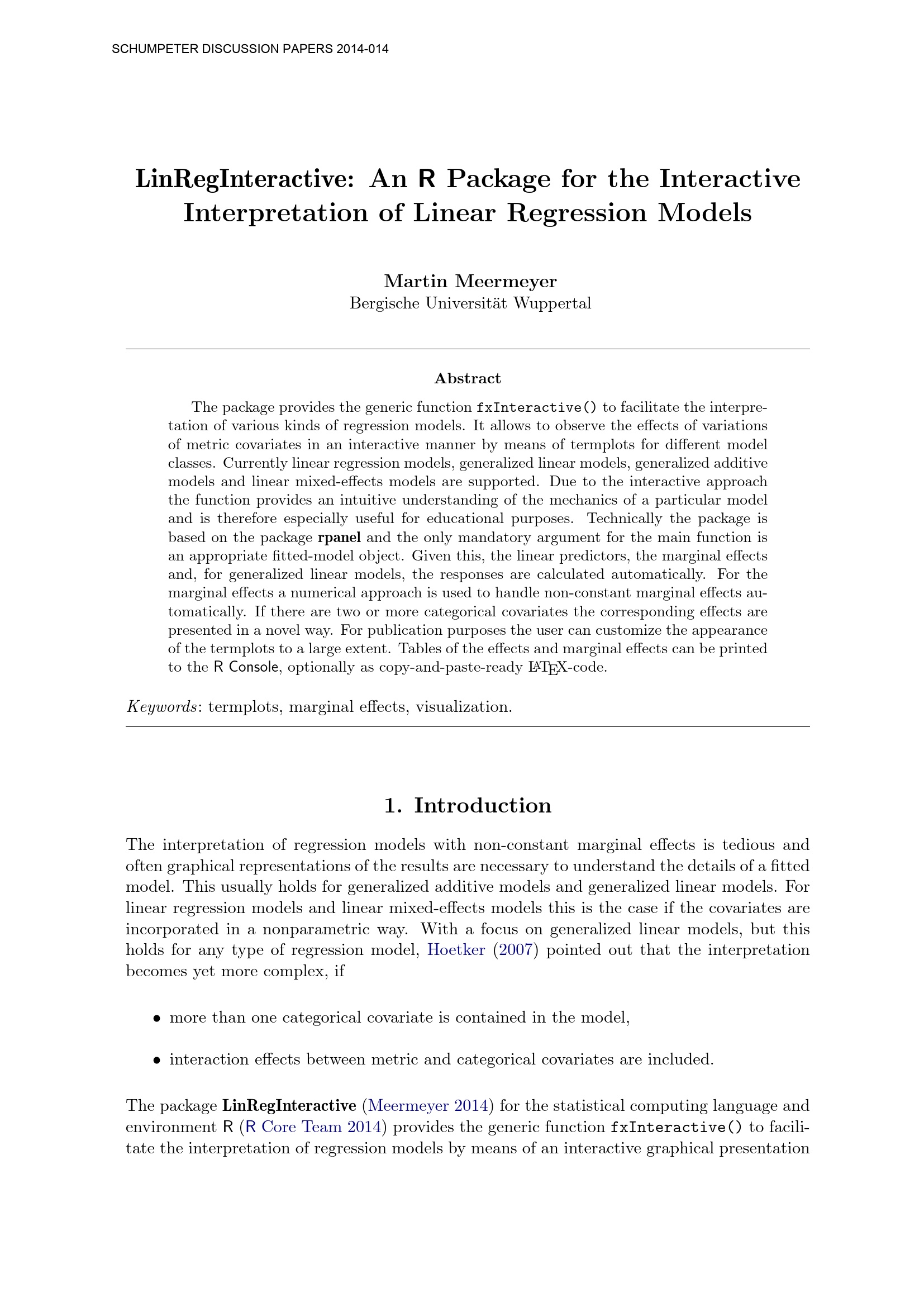LinRegInteractive : an R package for the interactive interpretation of linear regression models / Martin Meermeyer