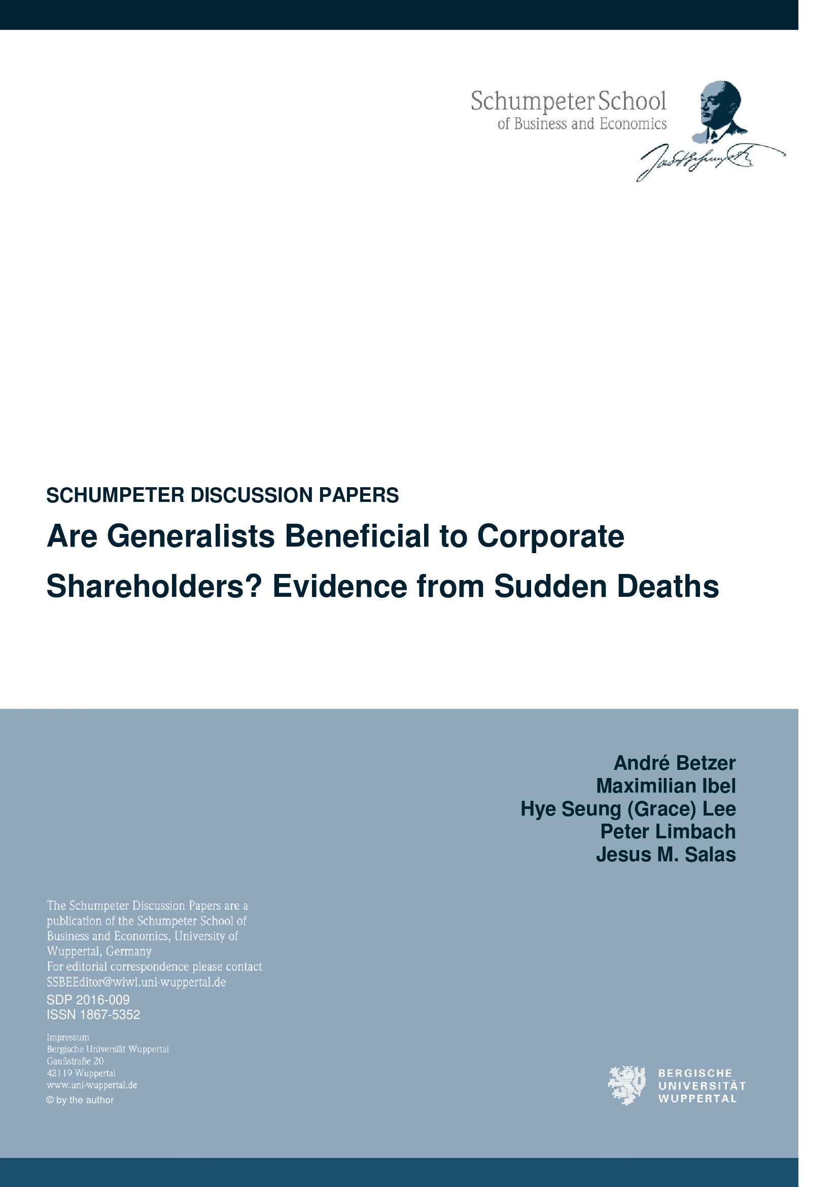 Are generalists beneficial to corporate shareholders? : evidence from sudden deaths / André Betzer, Maximilian Ibel, Hye Seung (Grace) Lee, Peter Limbach, Jesus M. Salas