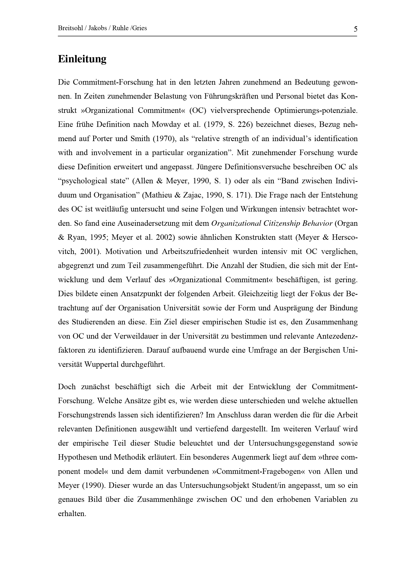 Ausprägung und Antezendenzfaktoren des "Organizational Commitment" von Studierenden : eine Querschnittuntersuchung des Fachbereich B an der Bergischen Universität Wuppertal / Heiko Breitsohl ...