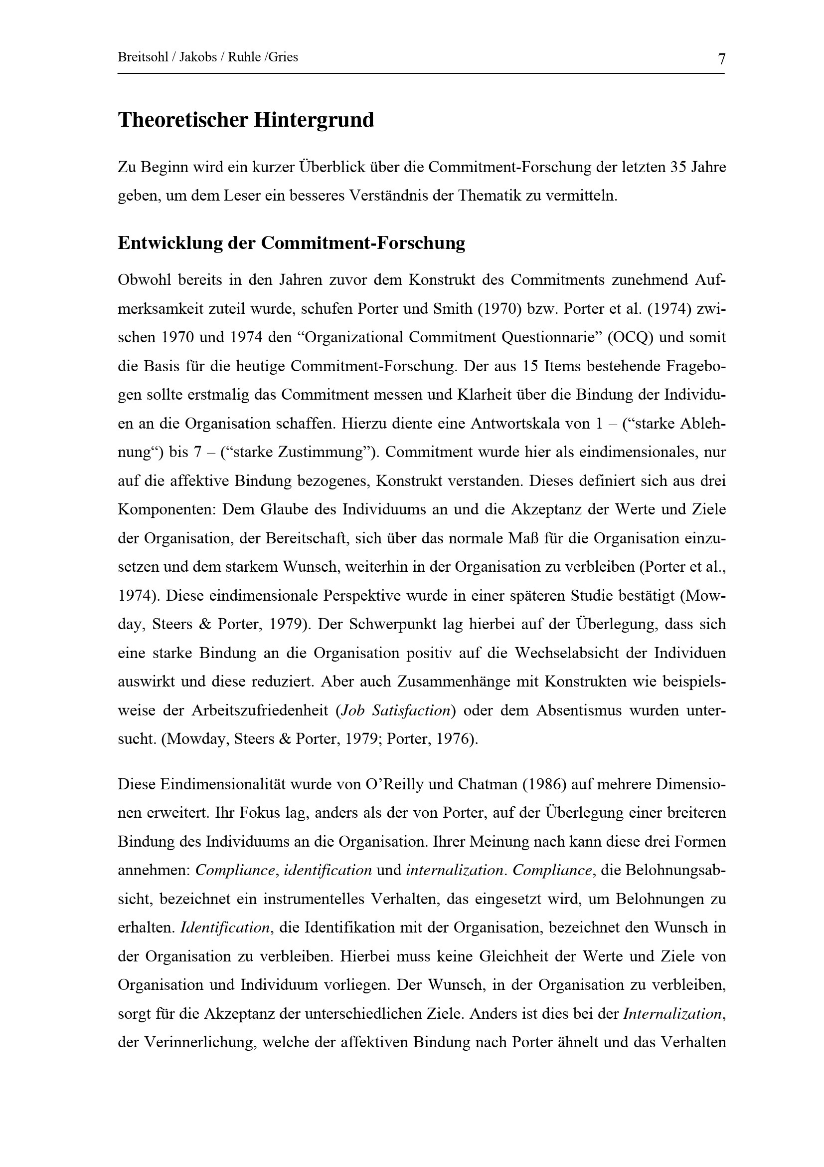 Ausprägung und Antezendenzfaktoren des "Organizational Commitment" von Studierenden : eine Querschnittuntersuchung des Fachbereich B an der Bergischen Universität Wuppertal / Heiko Breitsohl ...