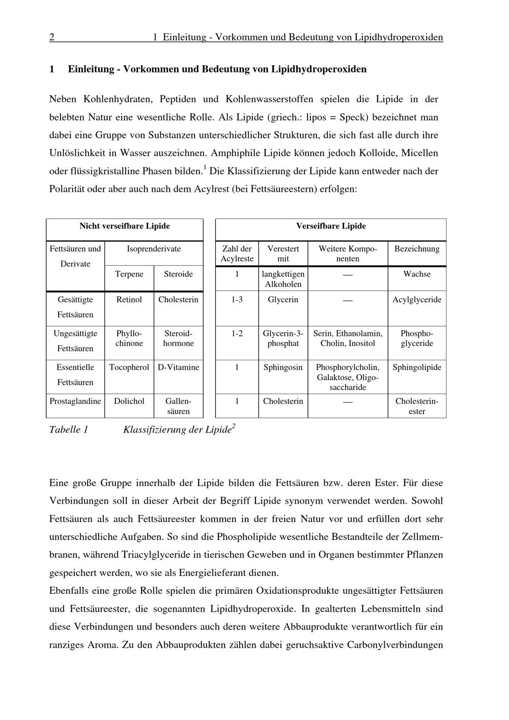 1 Einleitung - Vorkommen und Bedeutung von Lipidhydroperoxiden