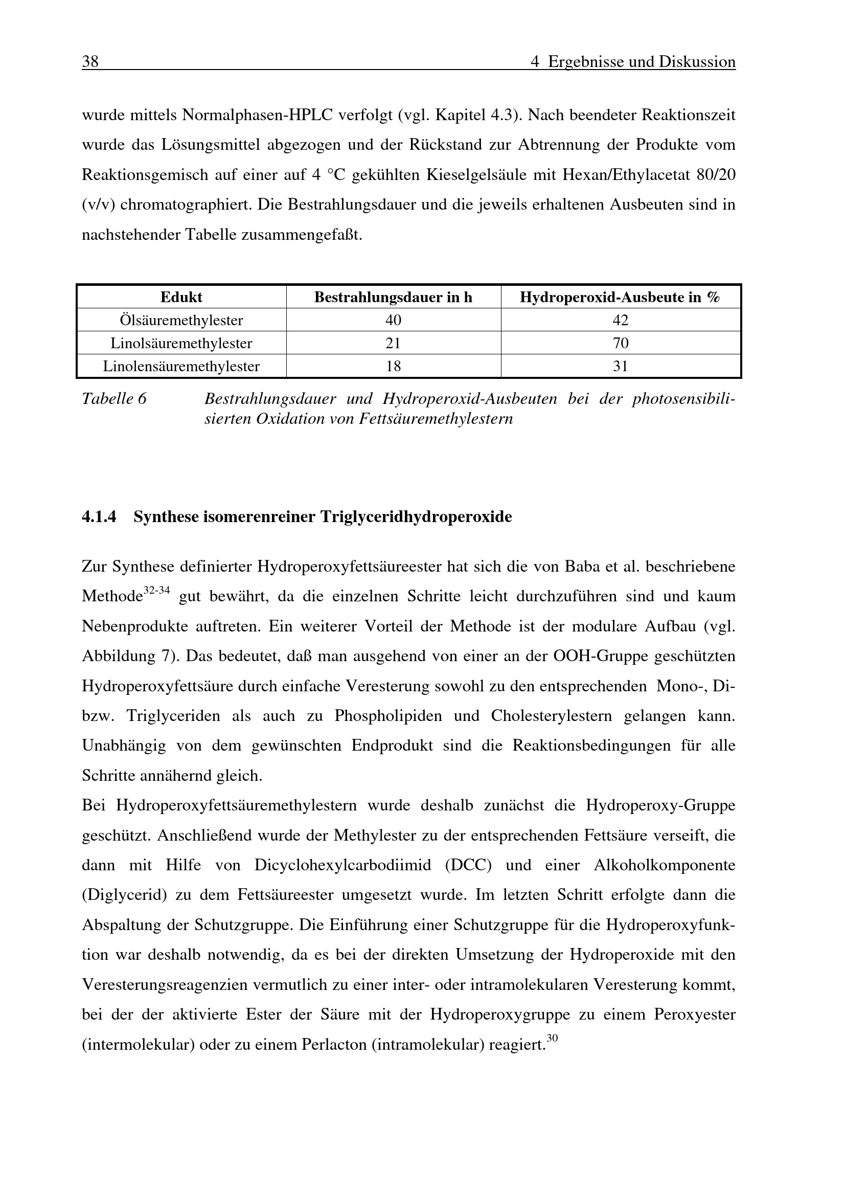4.1.4 Synthese isomerenreiner Triglyceridhydroperoxide