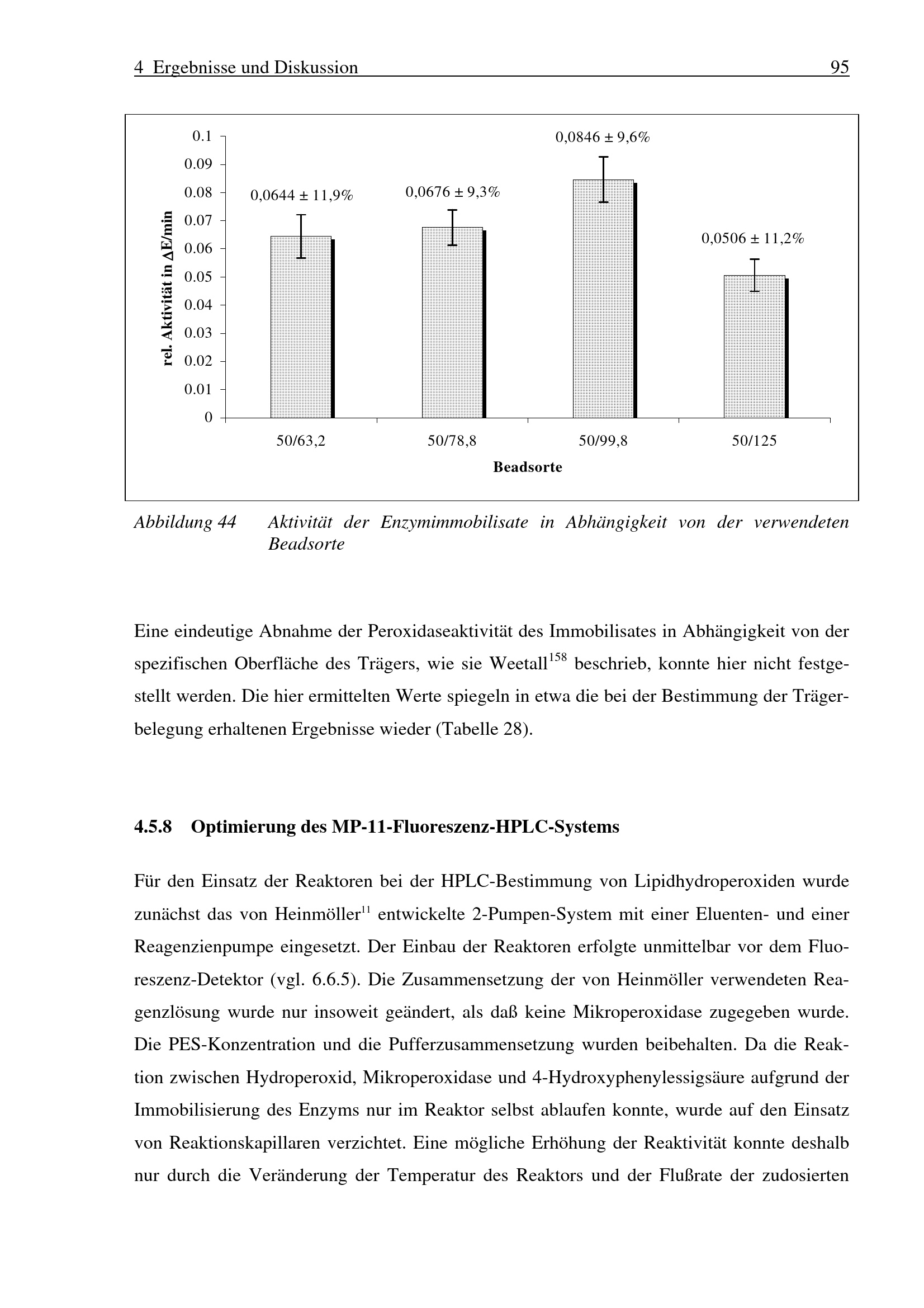 4.5 Entwicklung eines Enzymreaktors zur Detektion von Lipidhydroperoxiden in der