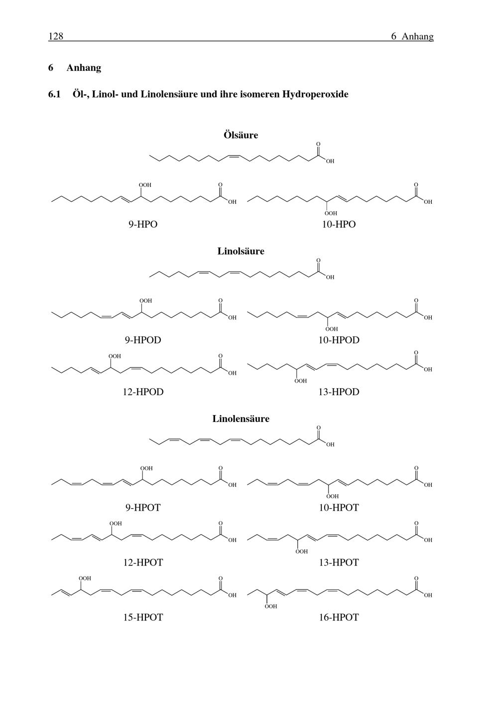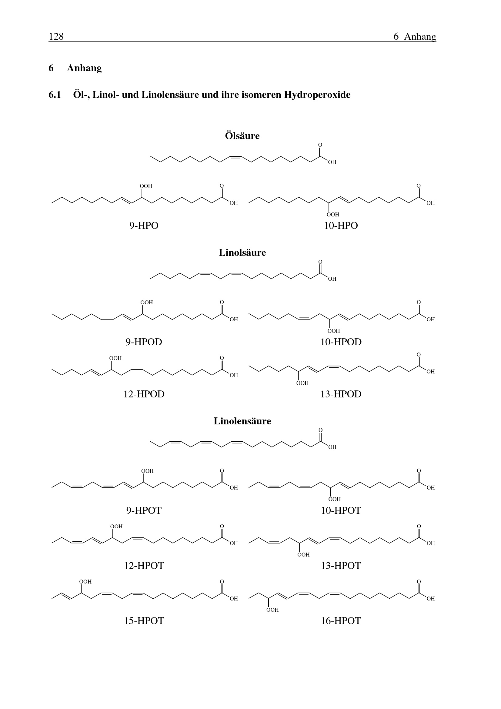 6.1 Öl-, Linol- und Linolensäure und ihre isomeren Hydroperoxide