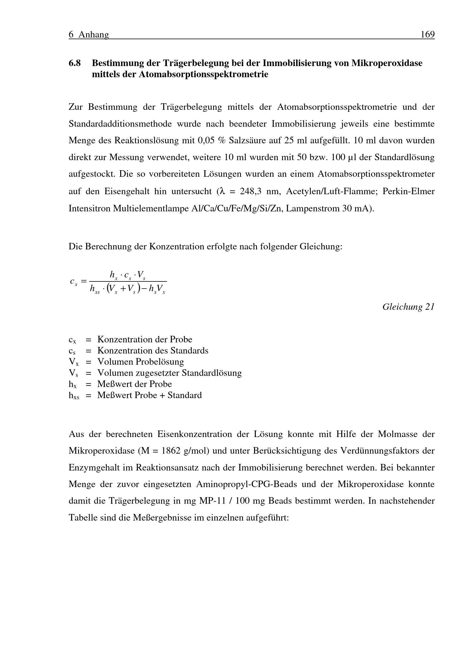6.8 Bestimmung der Trägerbelegung bei der Immobilisierung von Mikroperoxidase
