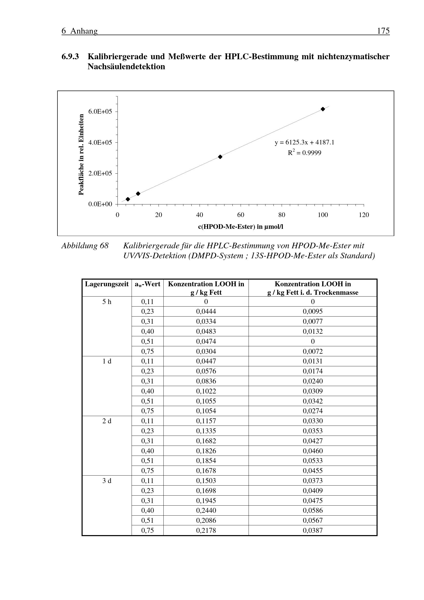 6.9.3 Kalibriergerade und Meßwerte der HPLC-Bestimmung mit nichtenzymatischer