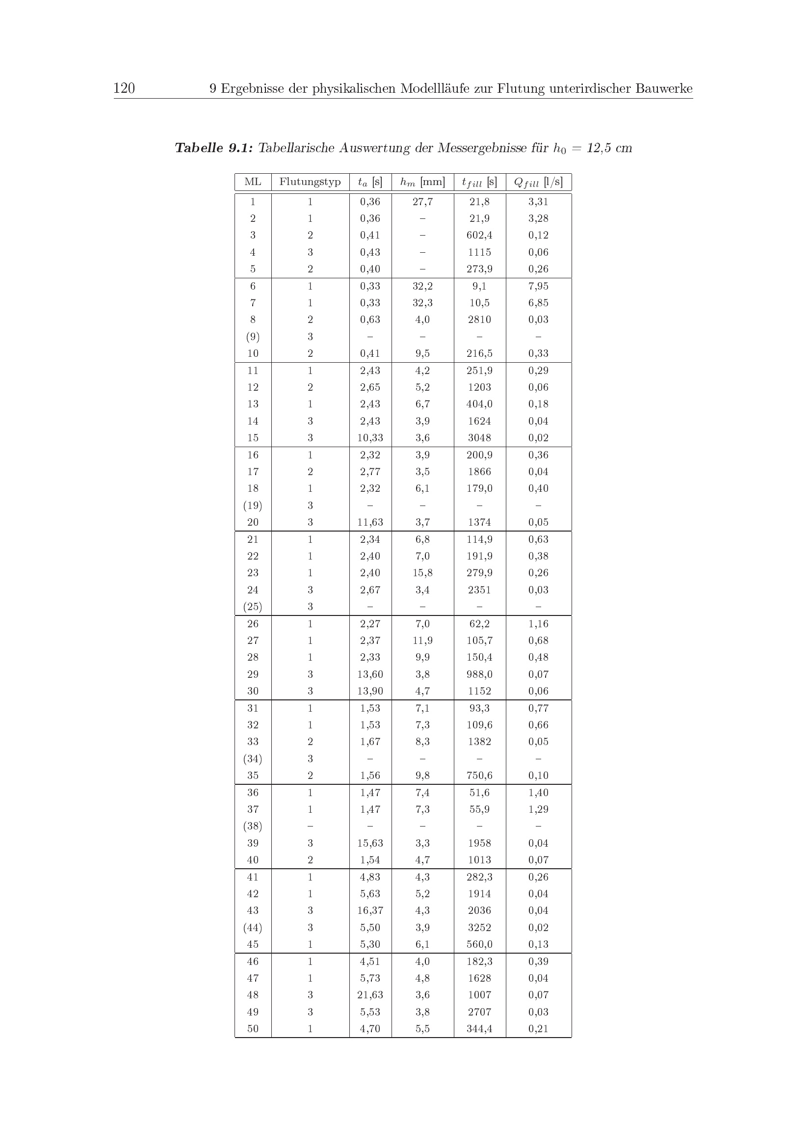 Ergebnisse der physikalischen Modellläufe zur Flutung unterirdischer Bauwerke