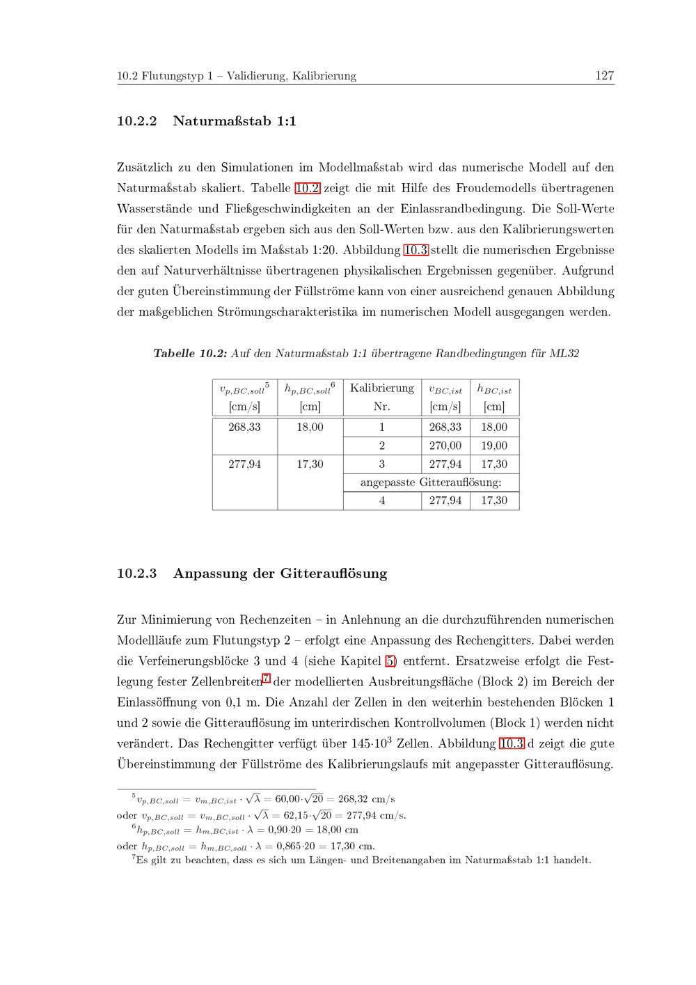 Flutungstyp 1 -- Validierung, Kalibrierung
